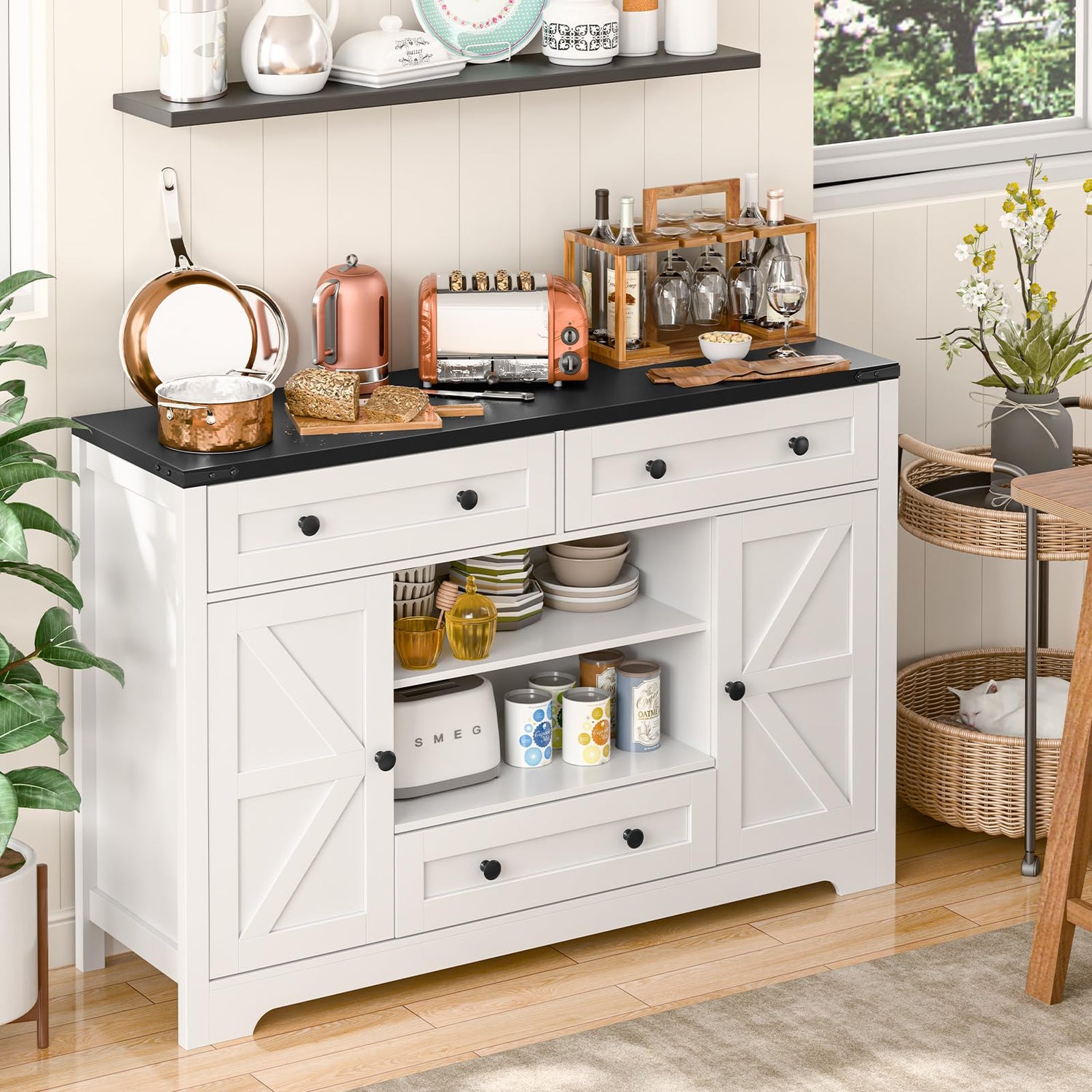 Vabches Farmhouse Sideboard Buffet Cabinet, Kitchen Storage Cabinet with 3 Large Drawers and 2 Doors Wood Rustic Sideboard Buffet Cabinet for Kitchen, Living Room, White