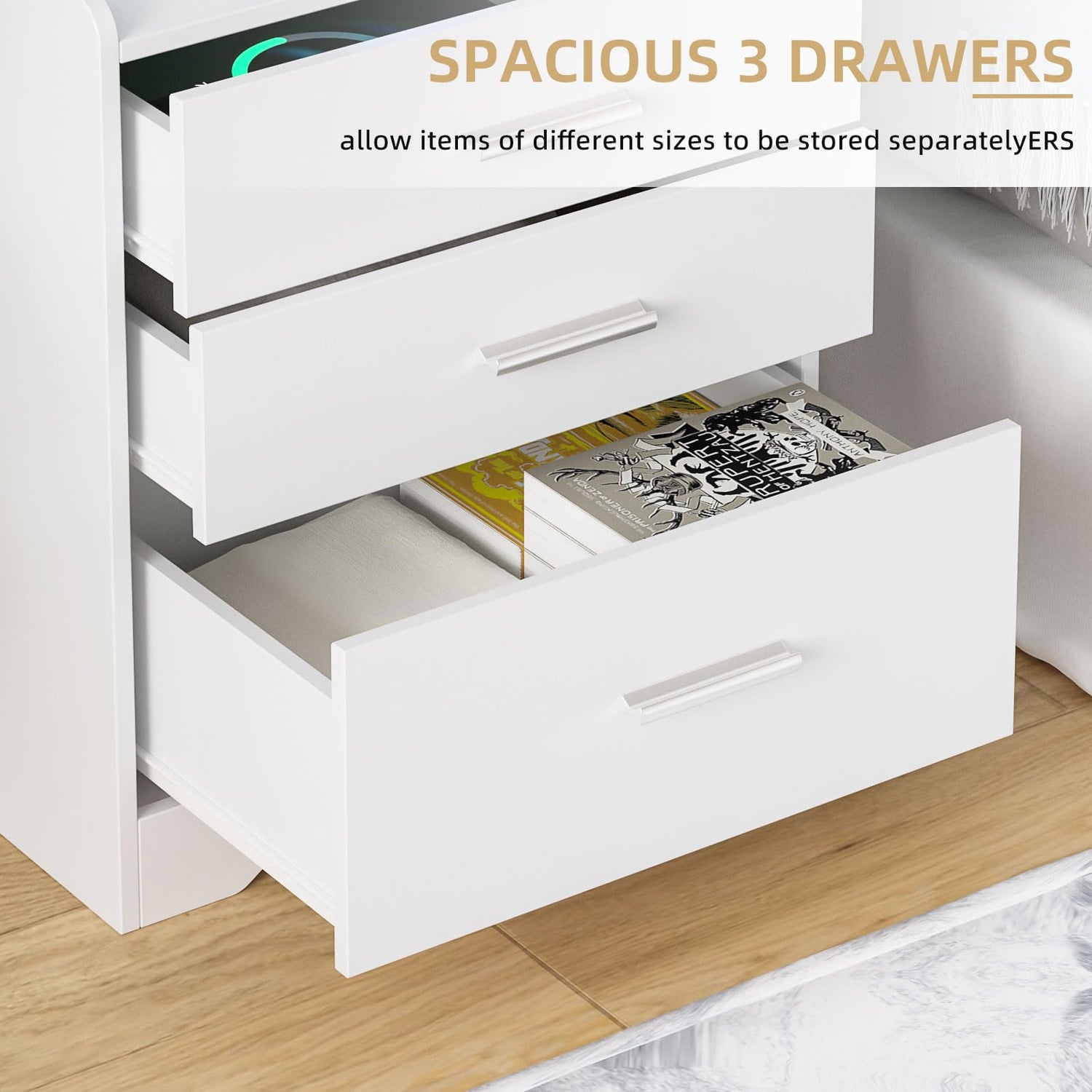 Vabches Nightstand with Charging Station, LED Nightstand with 3 Drawers, Smart Night Stand Bed Side Table, Wood Nightstand for Bedroom Living Room