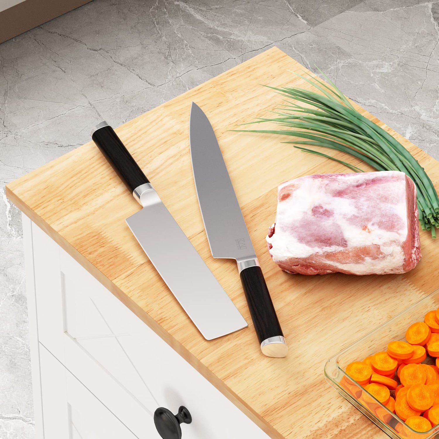 • Kitchen Cutting Board Table Top: This is a fully upgraded kitchen trash bin cabinet. The material of the table top has been replaced with rubber wood solid wood, which can be used as a chopping board. It can cut vegetables, fruit, and doing various dishes on it. It is waterproof and moisture-proof, easy to clean, clean and sanitary, making your life more convenient.
