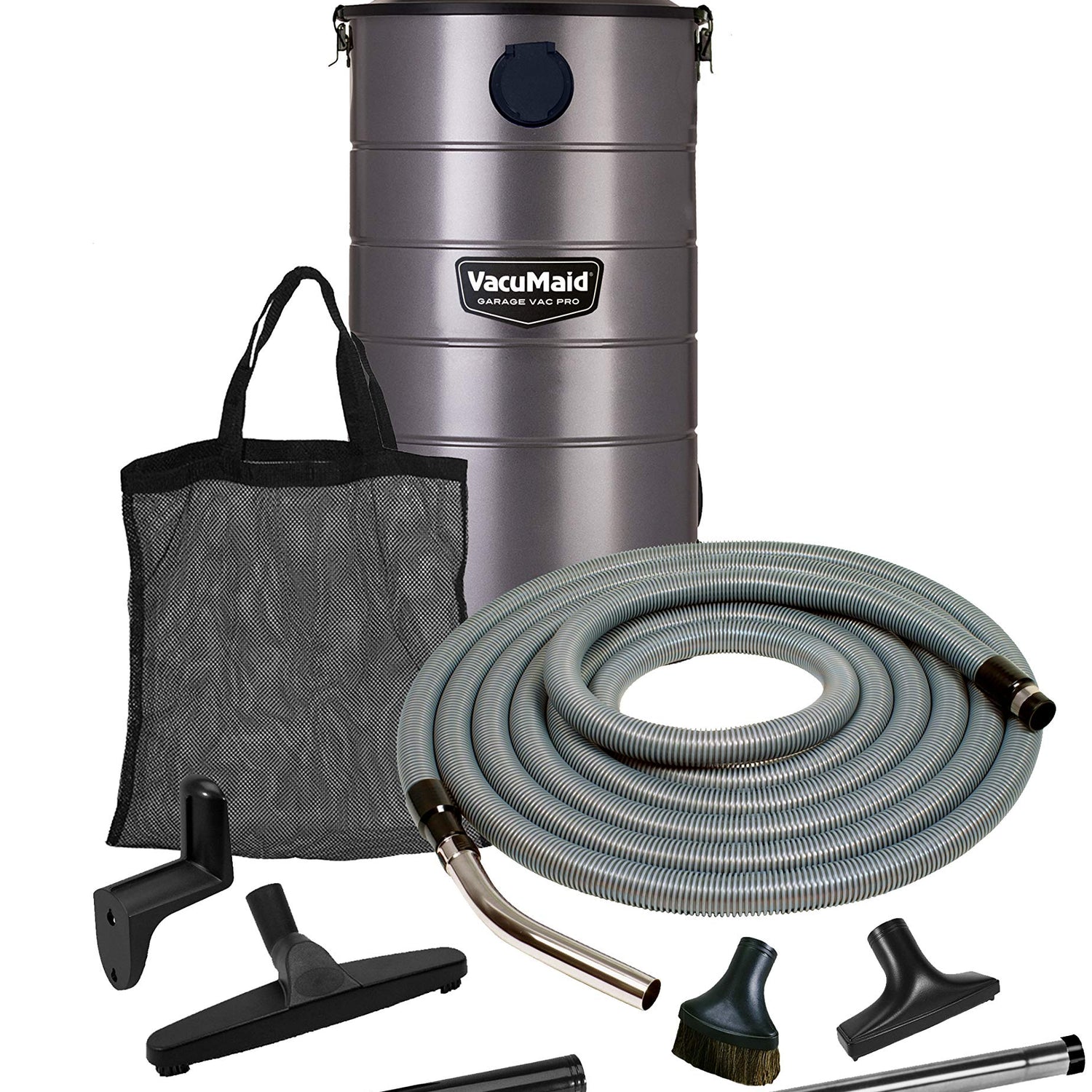 VacuMaid GV30PRO Wall Mounted Garage and Car Shop Vacuum Cleaner with 30 ft. Hose, Tools, and 7 Gallon Bag