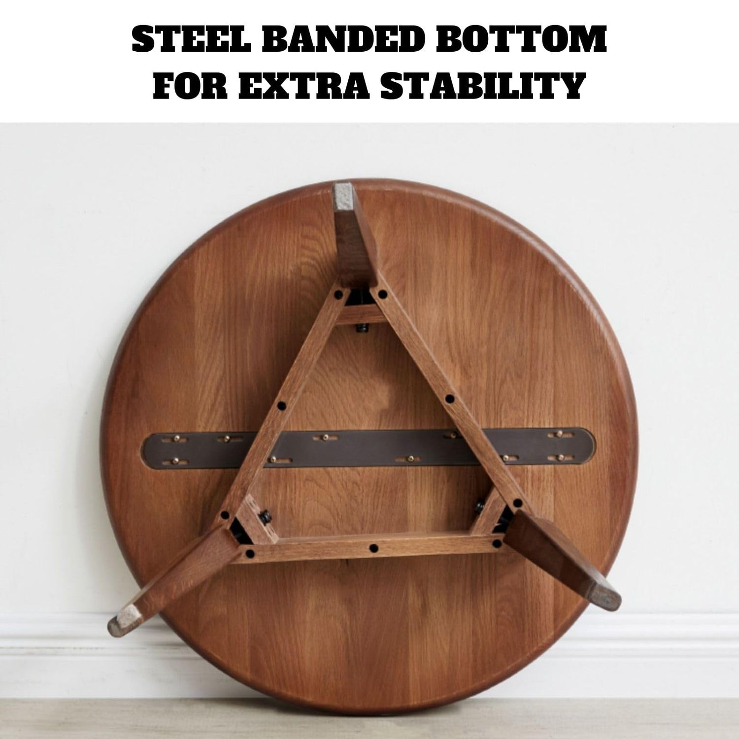 Vadisun 100% FAS Solid Oak Wood Mini Coffee Table - Natural Walnut Finish Round Coffee Table-Low Tea Table