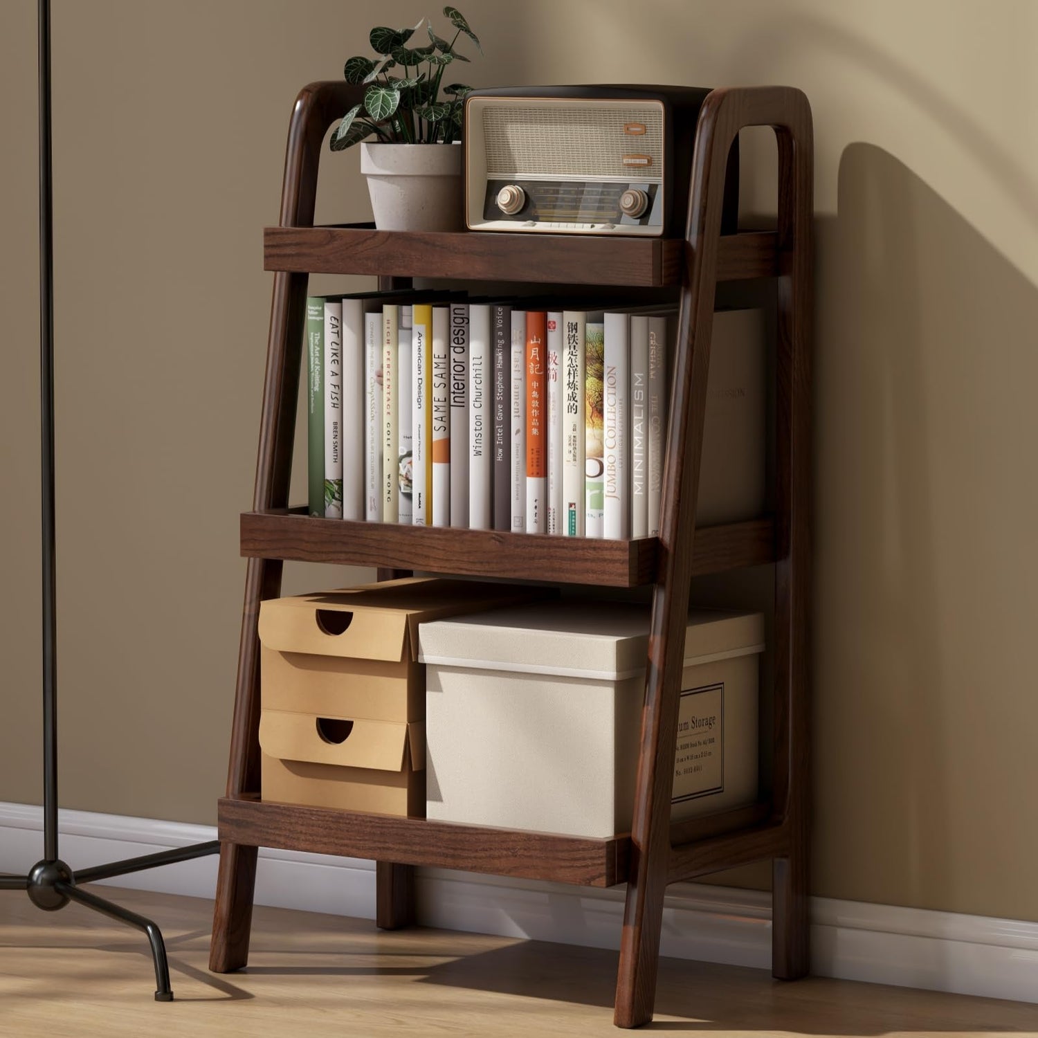 Vadisun 100% Solid Oak 3 Tier Ladder Shelf, Small Bookshelf, Ladder Bookshelf, Bookcase with Stable Frame, Small Table for Living Room Bedroom(Walnut, 12.6" L x 17.72" W x 31.5" H)