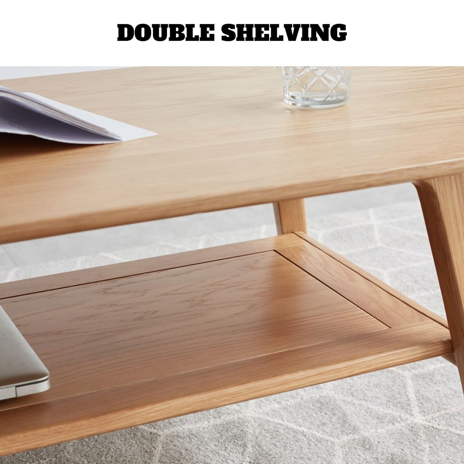 Vadisun 2-Tier Coffee Table with Storage Shelf, Natural Color 100% Solid Wood Table for Living Room, Elegant Furniture for Small Apartment (Natural, 39.37“ x 19.69” x 17.32“)