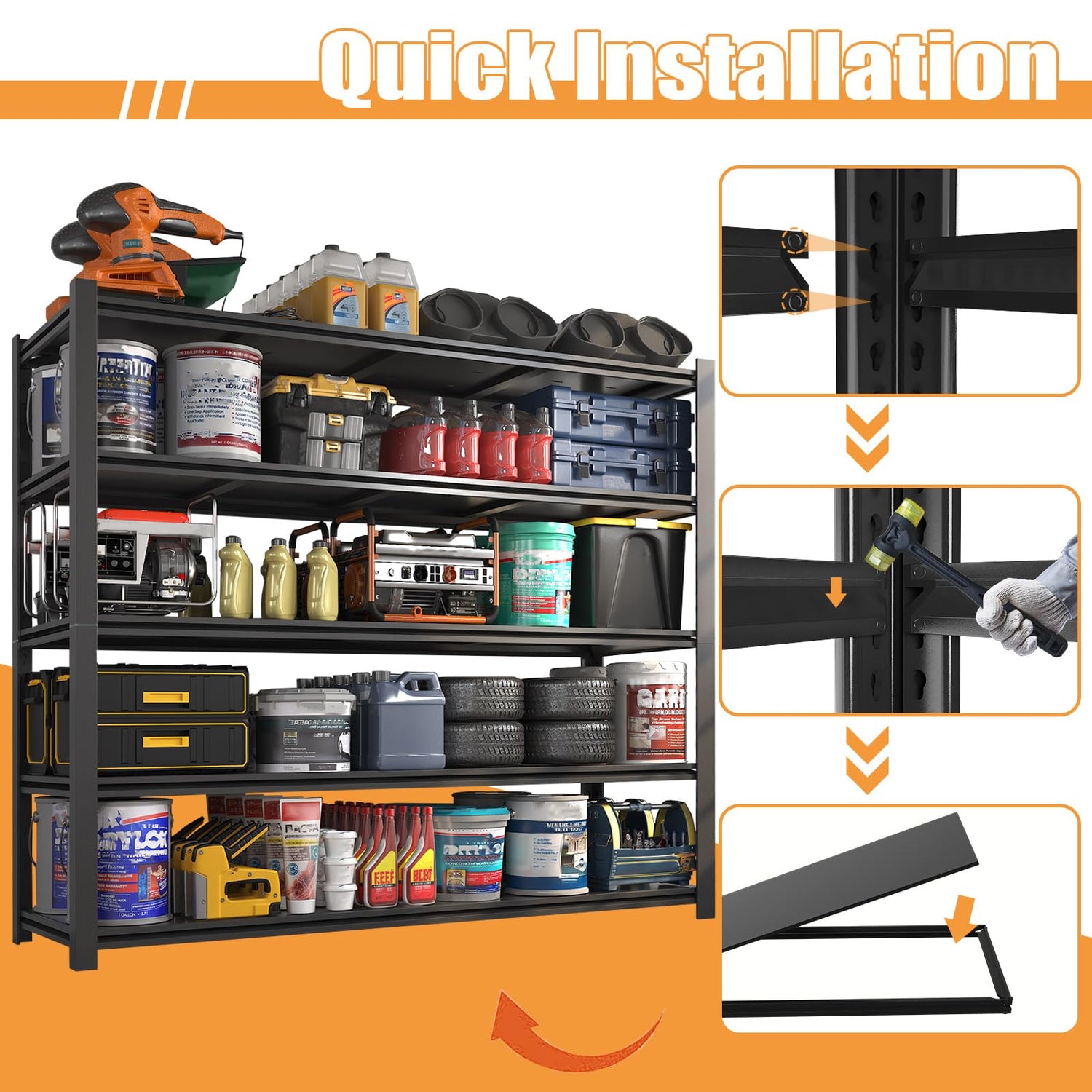 Vaernevy 59''W/72''H Garage Shelving Units Heavy Duty 3500LBS Metal Storage Shelves Adjustable Steel Industrial Shelving 5 Tier Storage Shelf Rack for Basement, Warehouse