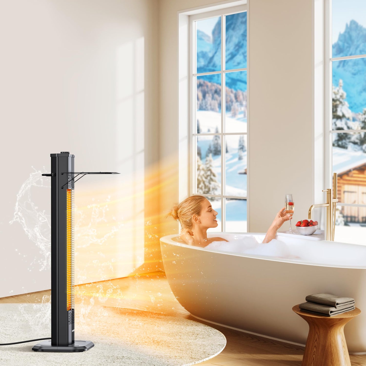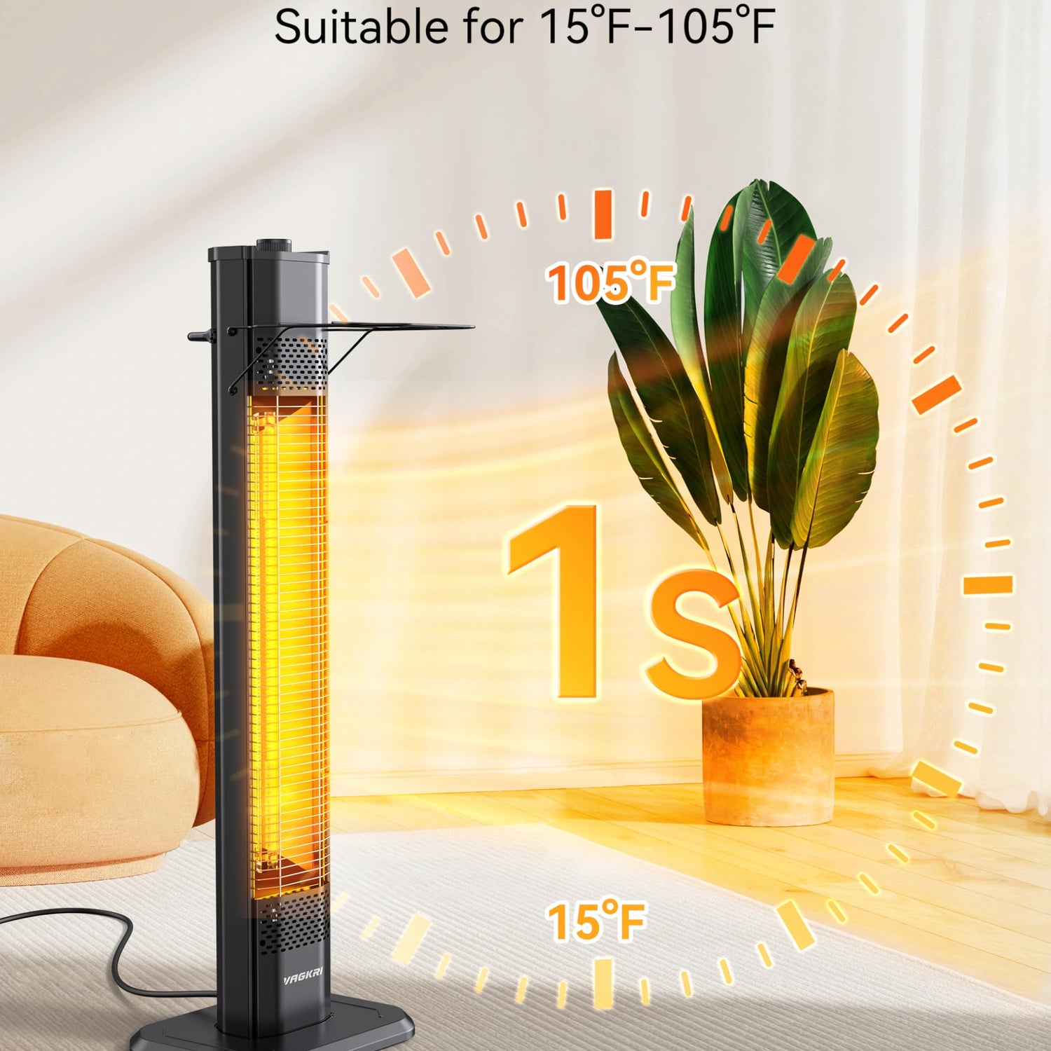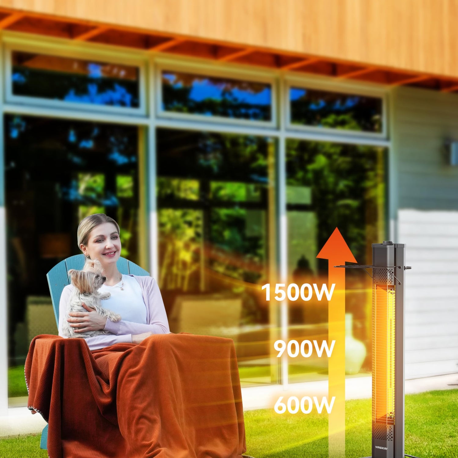 VAGKRI Outdoor Infrared Heater, 1500W 36inch Electric Heater with 3 Heating Levels, Tip-Over & Overheat Protection, IPX5 Waterproof Tower Space Heater for Patio Backyard Garage Restaurant Home