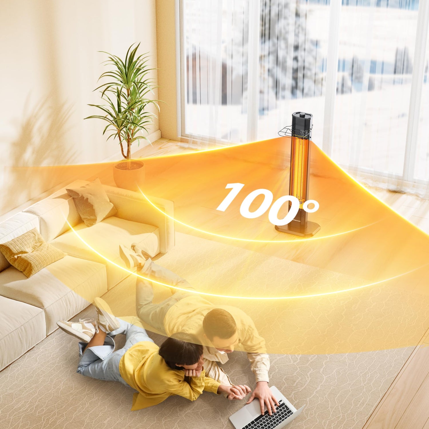 • 【Wide Heating Range】This 36-inch tower space heater delivers warmth within 100° wide-angle heating range. It provides sunshine-like instant and concentrated heat, which directly transfers heat to your body and makes you feel comfortable and warm in an instant. Ideal for a gazebo, patio, outdoor bar/restaurant, garage, balcony, and BBQ area