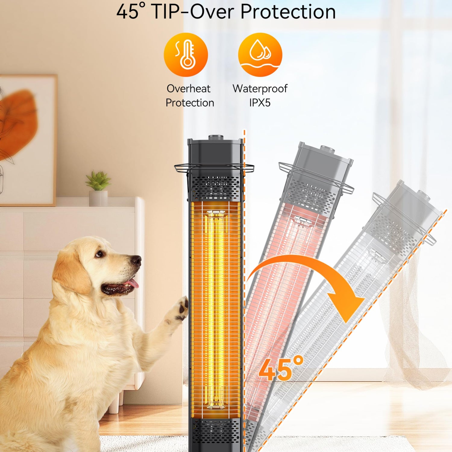 • 【Safe To Use】With tip-over and overheat Protection, when tilting off the ground or being knocked over by pets, the tower space heater shuts down automatically. When it is overheated, the electric patio heater use stops heating automatically