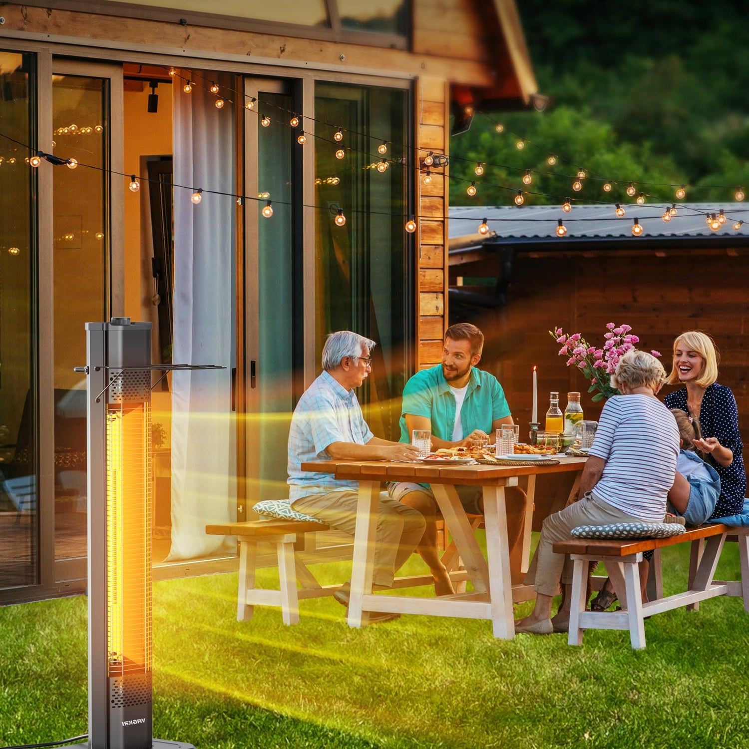 • 【1S Rapid Heating】With advanced infrared technology, the 1500W outdoor heater enables you to warm up in 1 second in your patio efficiently during cold winter. the infrared heater also promotes blood circulation without any side-effects