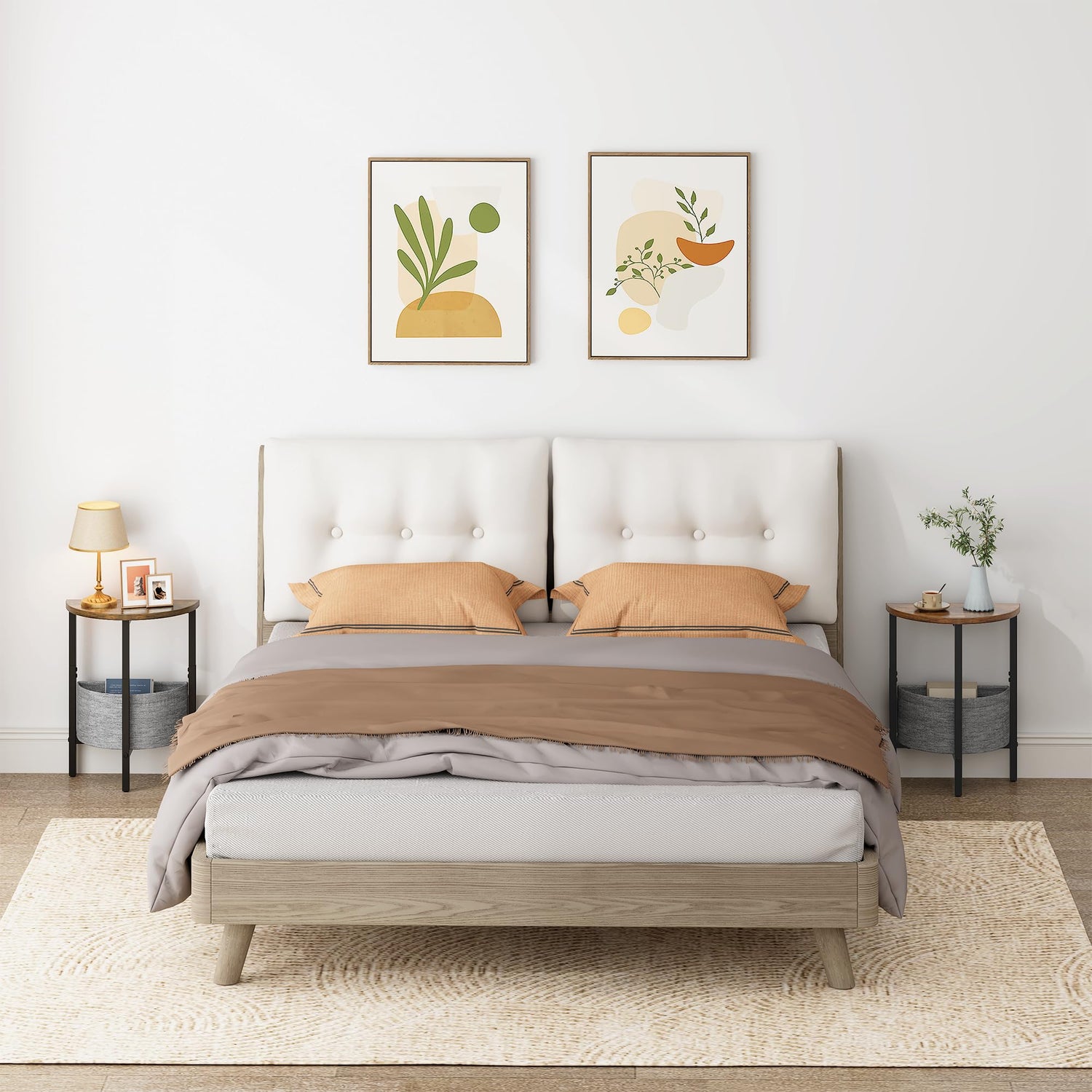 Vagusicc Small Round Side Table, Accent End Table with Storage Basket, Set of 2 Half Round Coffee Table End Table, Half Moon Bedside Table, Modern Nightstand Couch Table for Living Room Bedroom, Brown