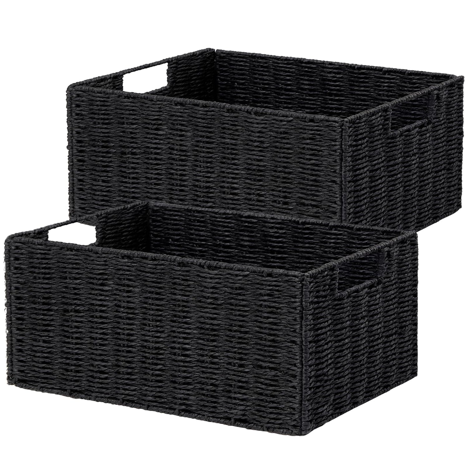 Vagusicc Wicker Storage Basket, Set of 2 Hand-Woven Paper Rope Wicker Basket, Small Storage Baskets for Organizing Toilet Paper Basket, Foldable Large Cube Storage Organizer Bins for Shelves (Black)