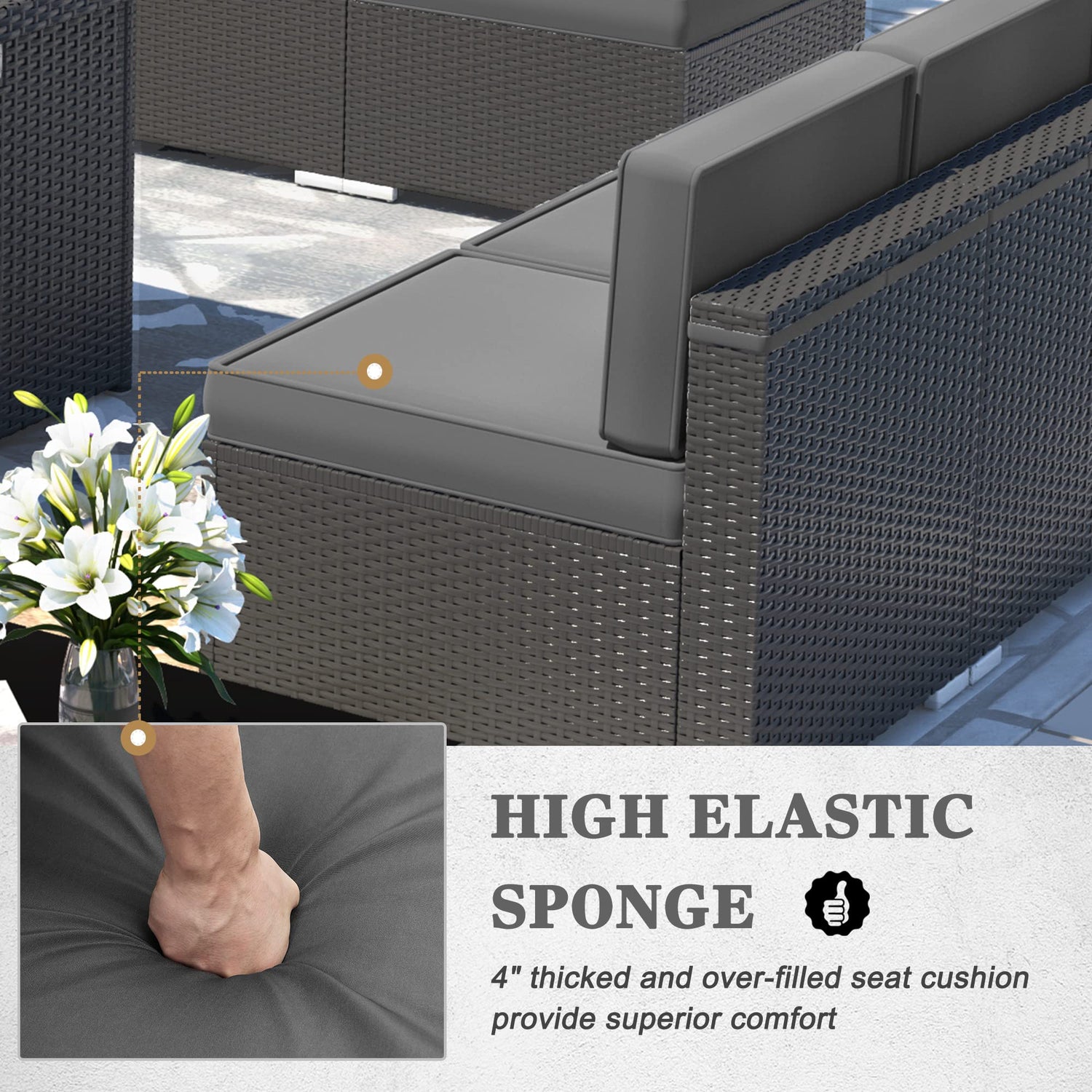 - BUILT TO LAST: Made from smooth all-weather rattan with steel frames, the warm sectional sofa set is lightweight, strong, and built to last.