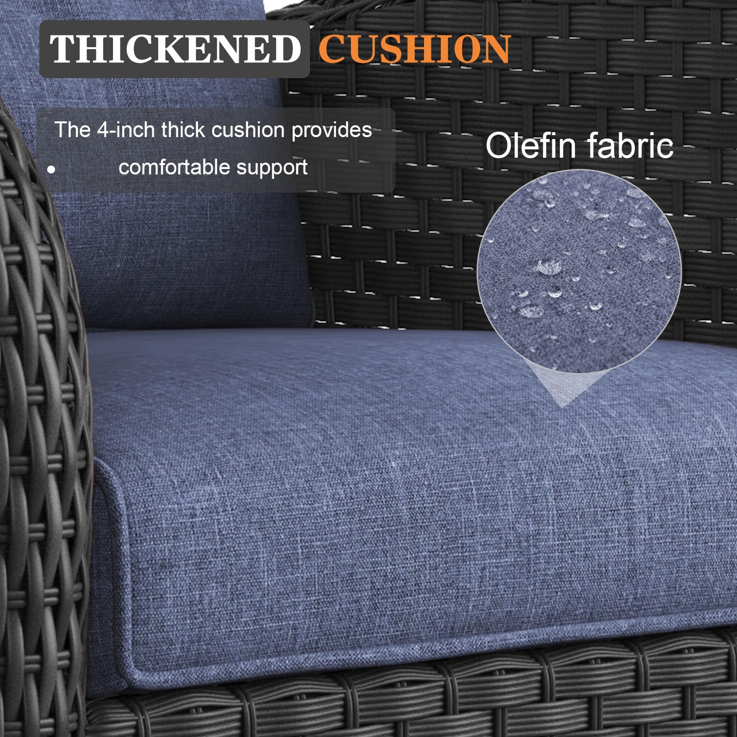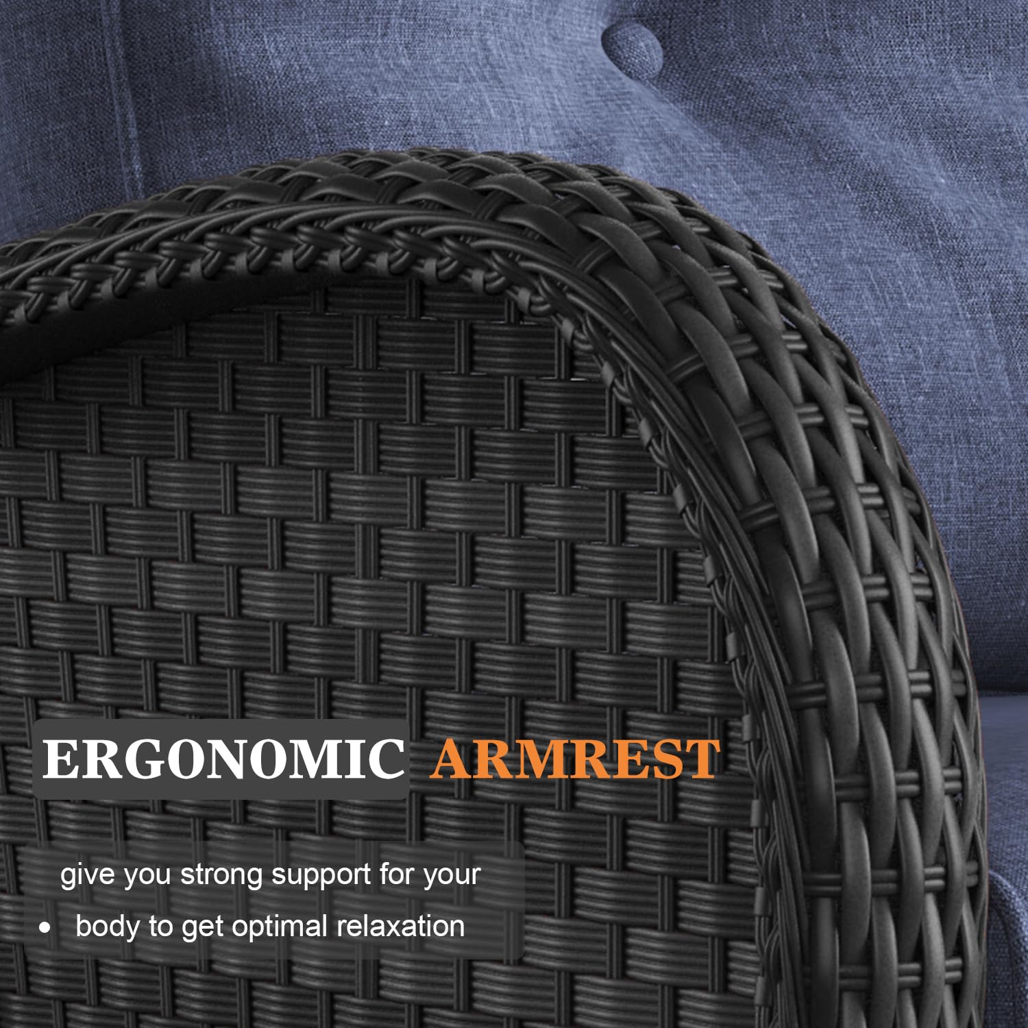 The wide, deep seat, high-quality wicker frame, comfortable armrests, and extra-thick olefin cushion are all superior features that make our Patio Furniture Set a favorite for many. Whether it's a gathering of friends or a family leisure activity, this versatile set is the perfect choice to effortlessly enhance your yard decor.The provision of superior products and an unparalleled experience is our unwavering commitment