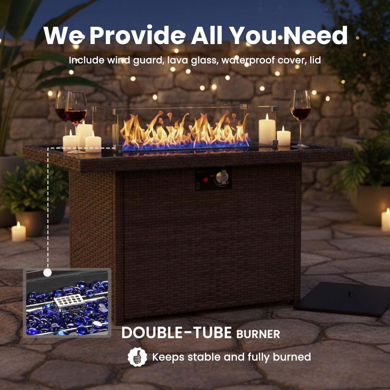 Vakollia 10 Pieces Patio Furniture Sets with Fire Pit Table, Wicker Rattan High Back Outdoor Swivel Rocking Chairs Set with 3-Seat Couch, Ottomans and Side Table