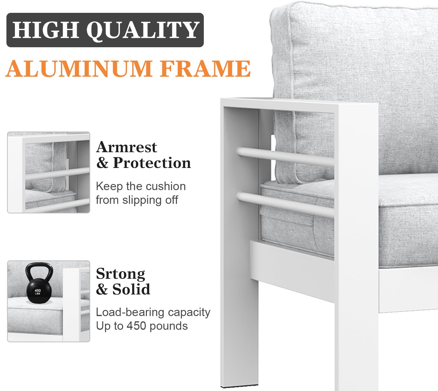 - FABRICATED FOR LIFE OUTSIDE - Constructed from powder-coated aluminum frames, that are water-resistant, UV-resistant, and rust-resistant so you can feel safe leaving this set outdoors no matter the season.