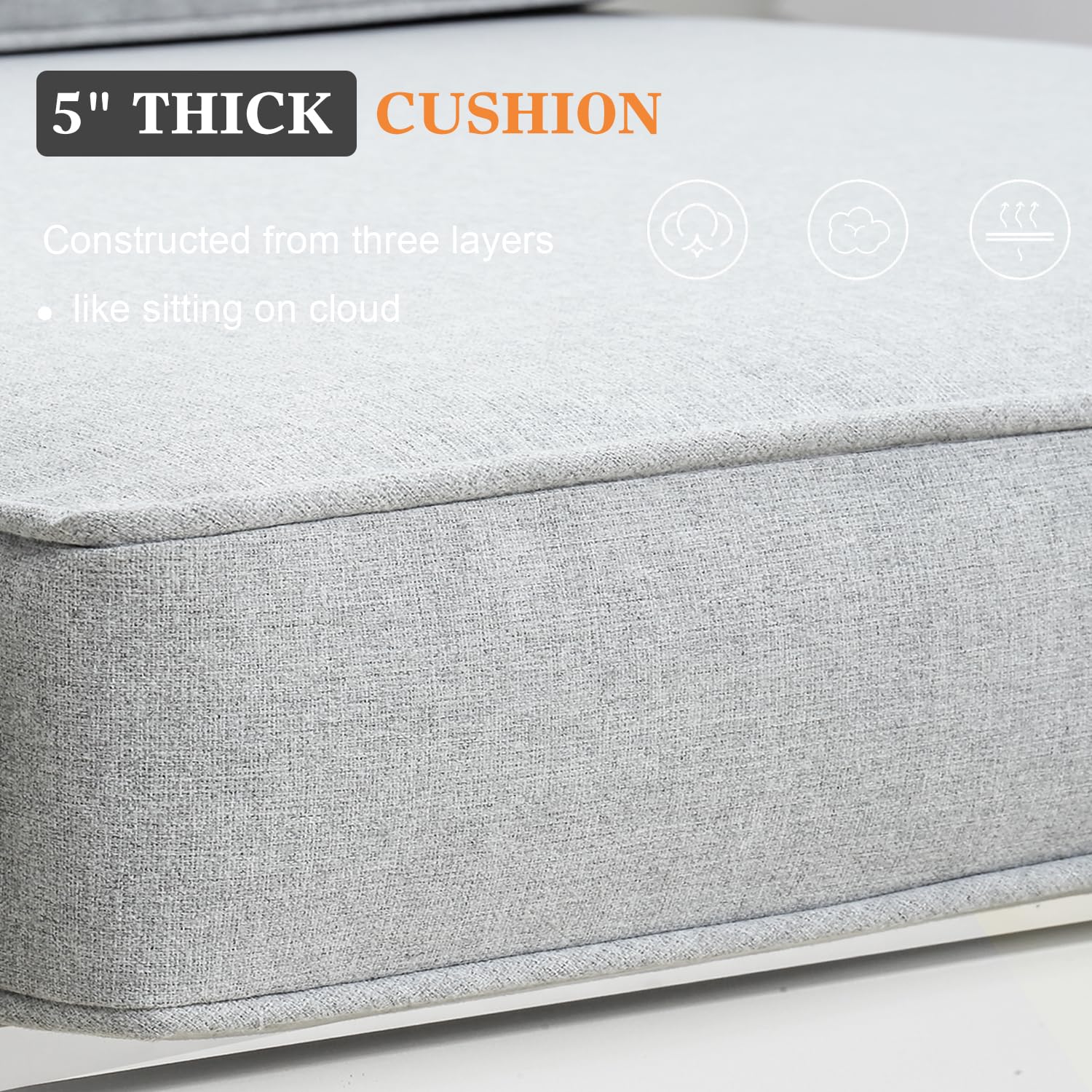 - LIKE SITTING ON A CLOUD - Constructed from three layers, the cushion is padded with 5" thick foam that gently conforms to your body for tailored support.