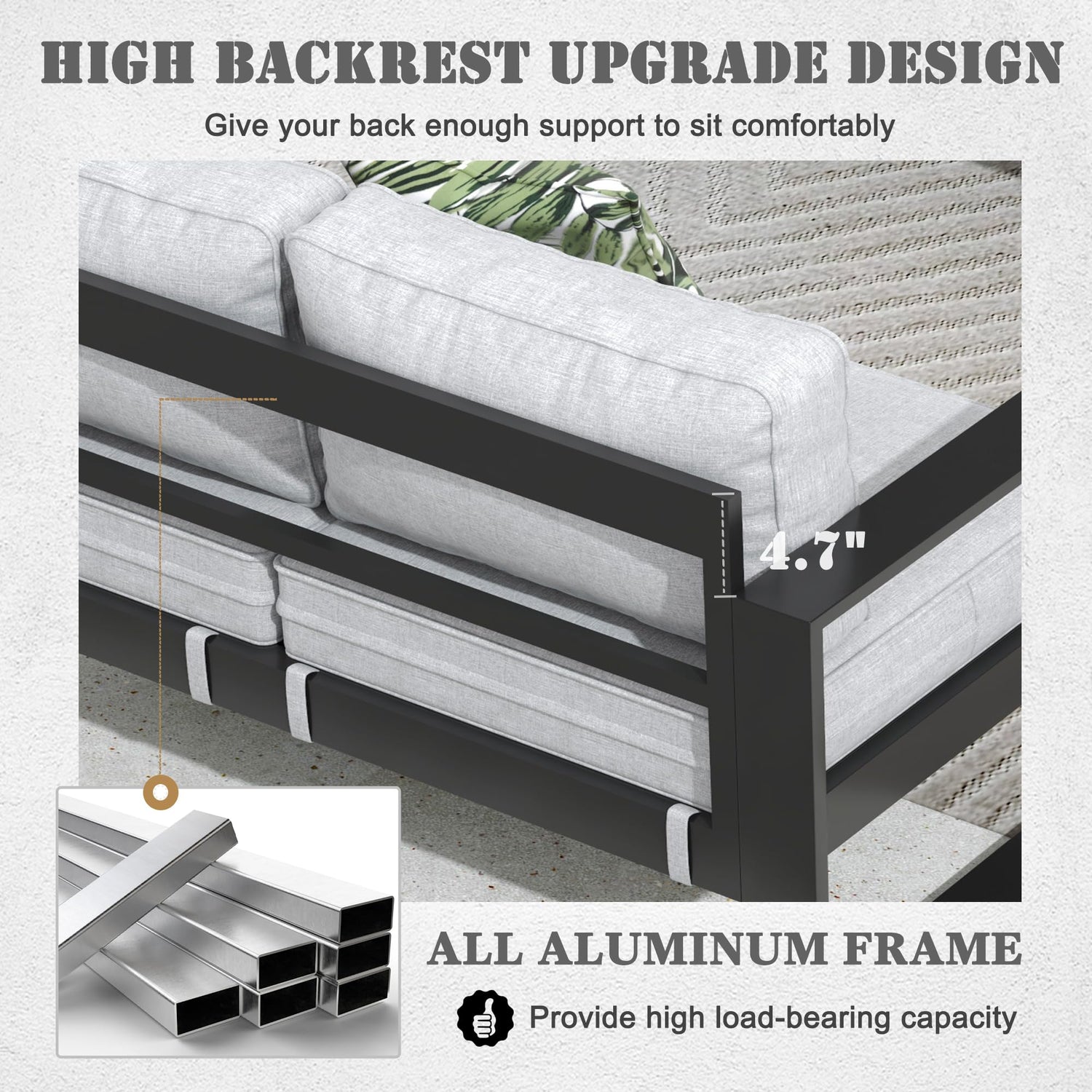 Vakollia Outdoor Aluminum Furniture Set with Fire Pit Table - 4 Pieces Modern Patio Conversation Sets Metal Sectional Sofa Set