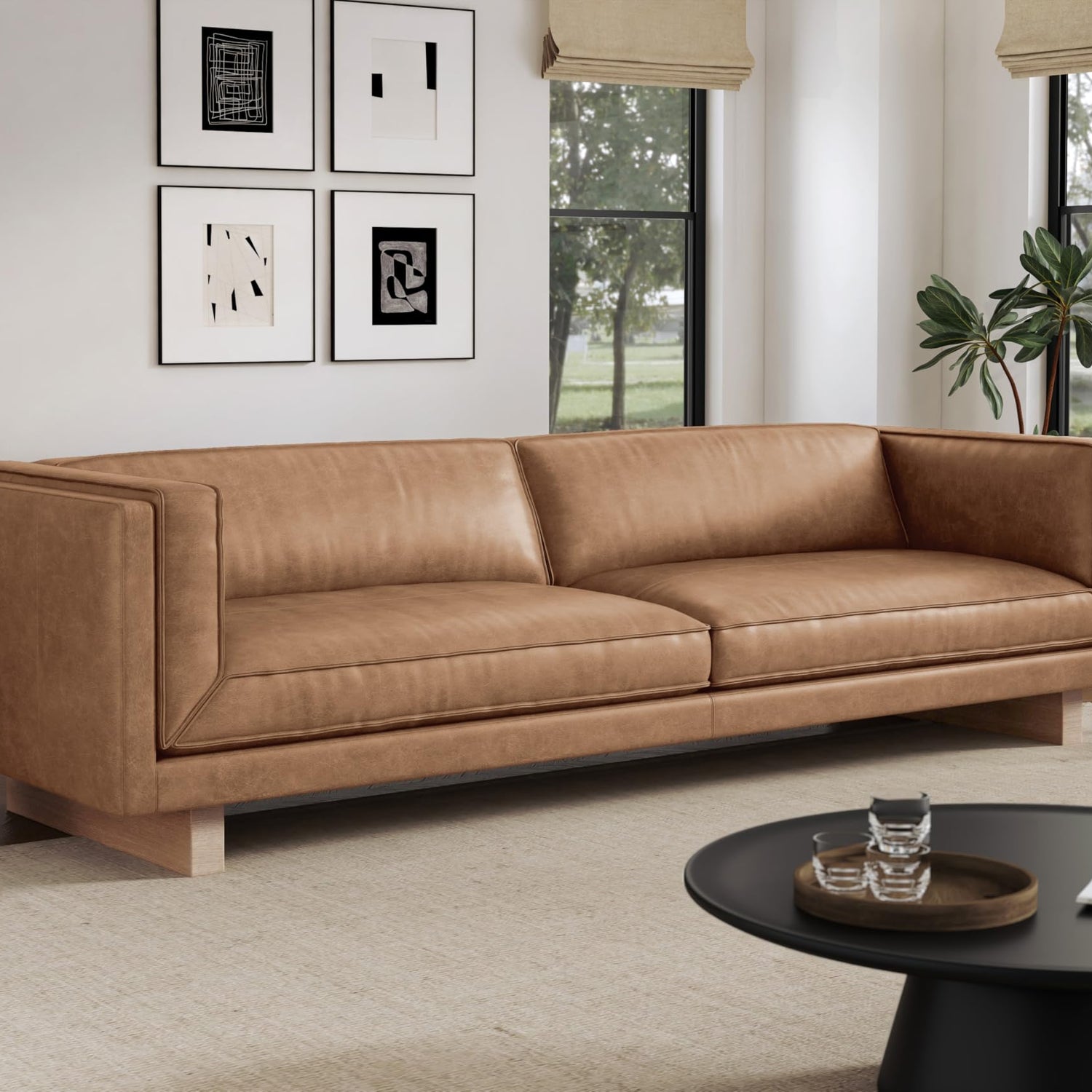 - Luxurious Italian Nappa Leather Upholstery:Crafted with the finest 100% Italian Nappa 11000 top grain leather, Alaina 110" wide seat sofa offers a luxurious, sophisticated appearance and exceptional durability, perfect for any living room or office.