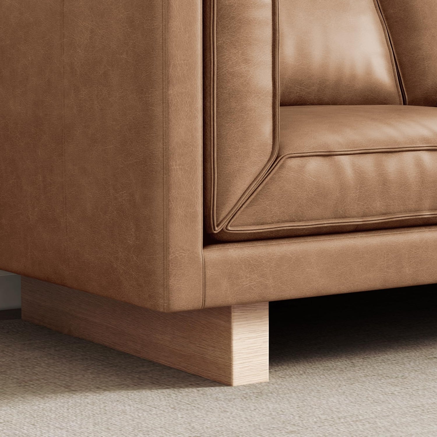 Valencia Alaina 110" Leather Wide Seat Sofa, Italian Nappa Top Grain Leather Couch, Scratch-Resistant for Living Room or Office (Brown)
