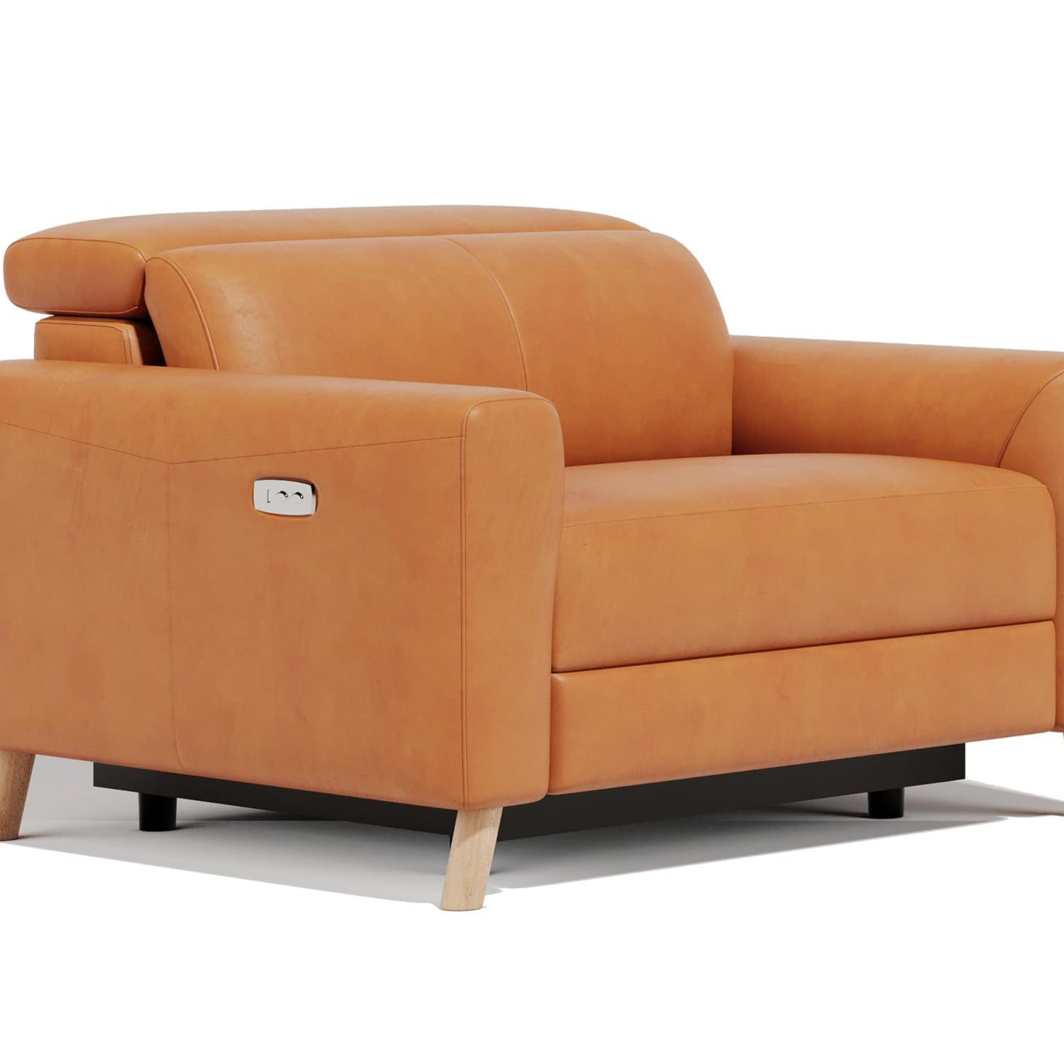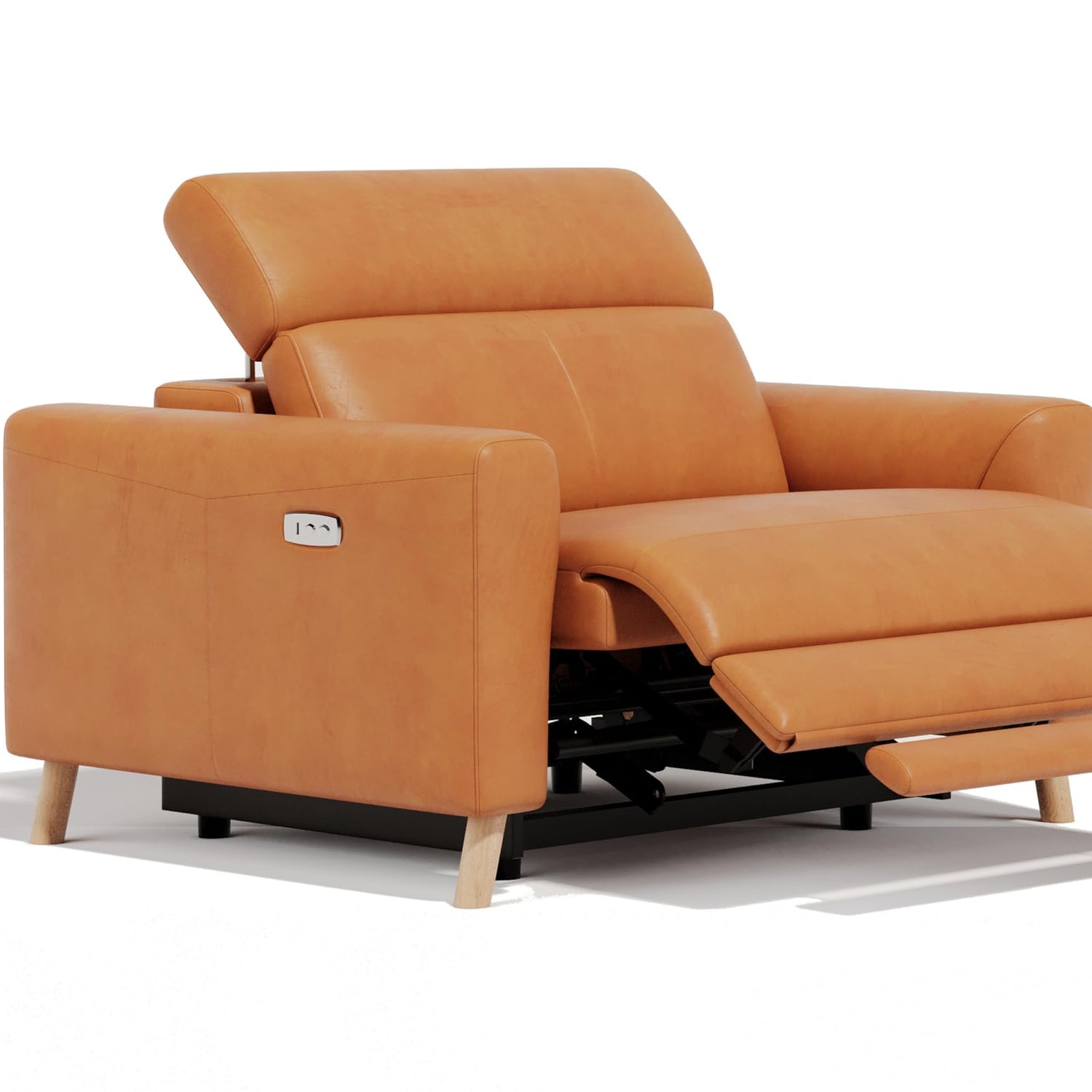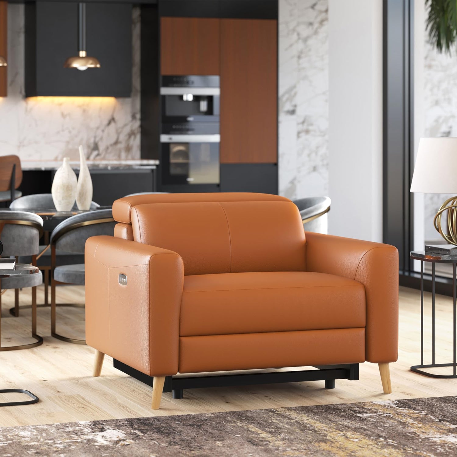 Valencia Elodie Leather Reclining Accent Chair, Italian Nappa 11000 Top Grain Leather, Power Recline & Adjustable Headrests, Modern Design for Living Room - Cognac