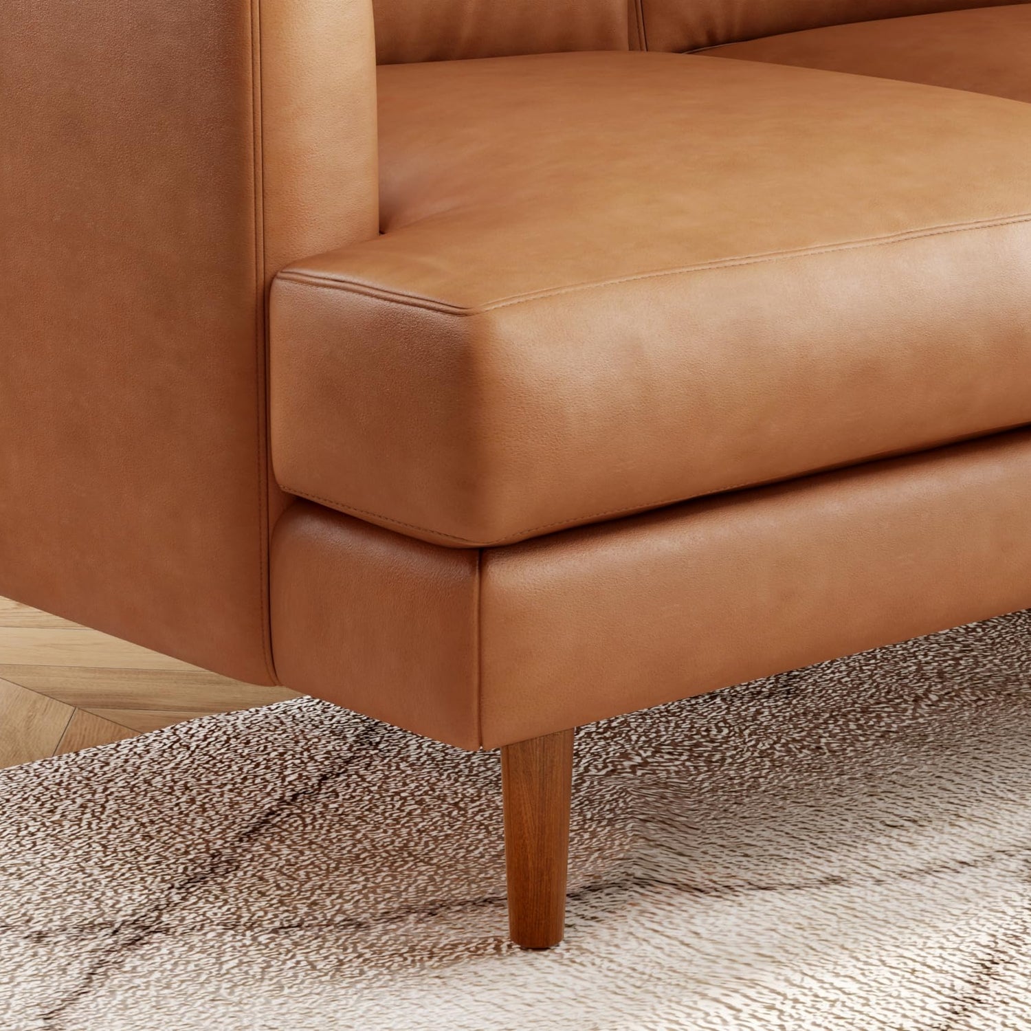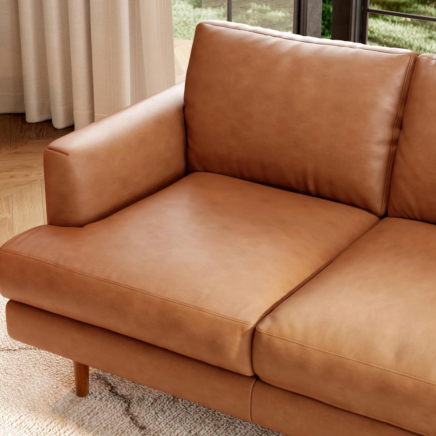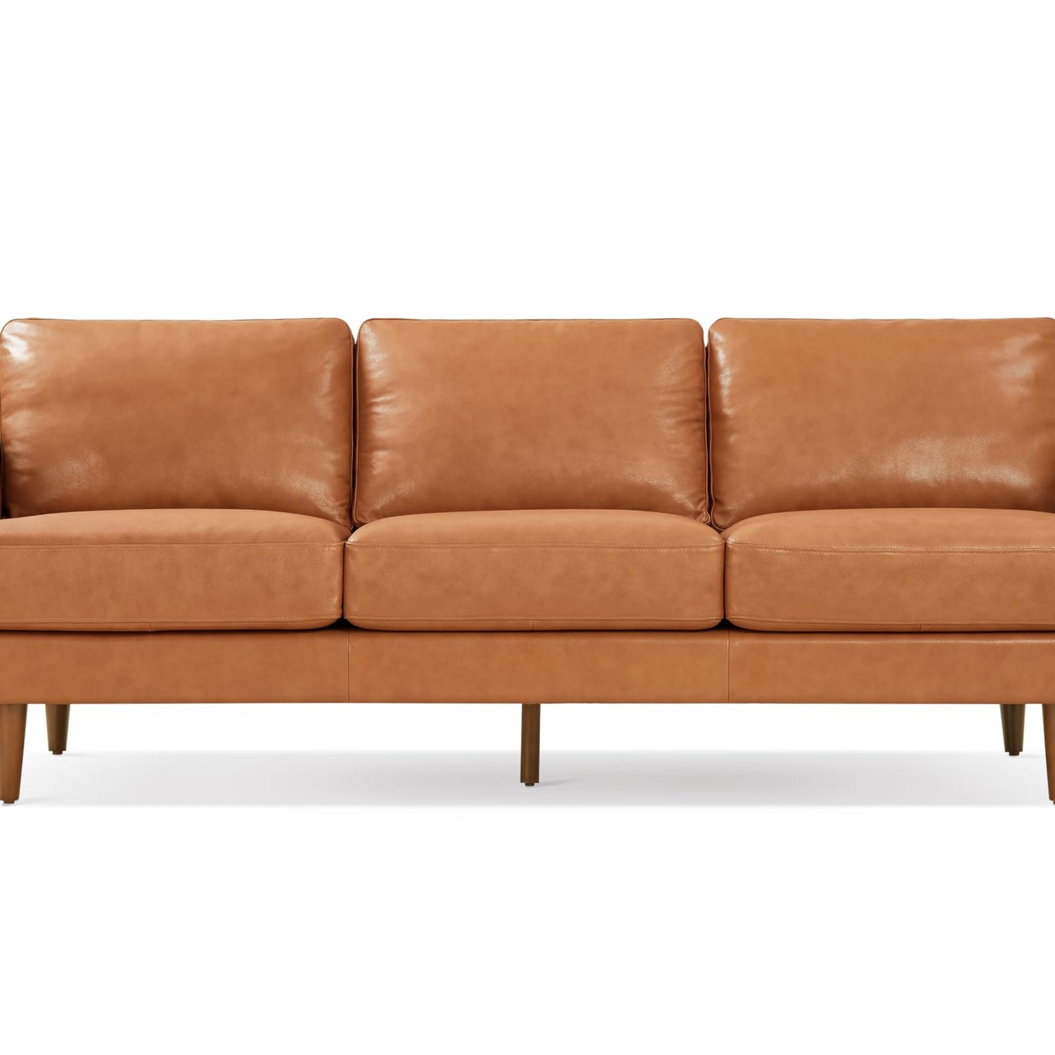 Valencia Grosseto 87” Cognac Tan Brown 3 Seater Full Leather Sofa | Mid Century Italian Nappa Leather Couch for Living Room Furniture | Double Stitched Seams, Removable Cushions