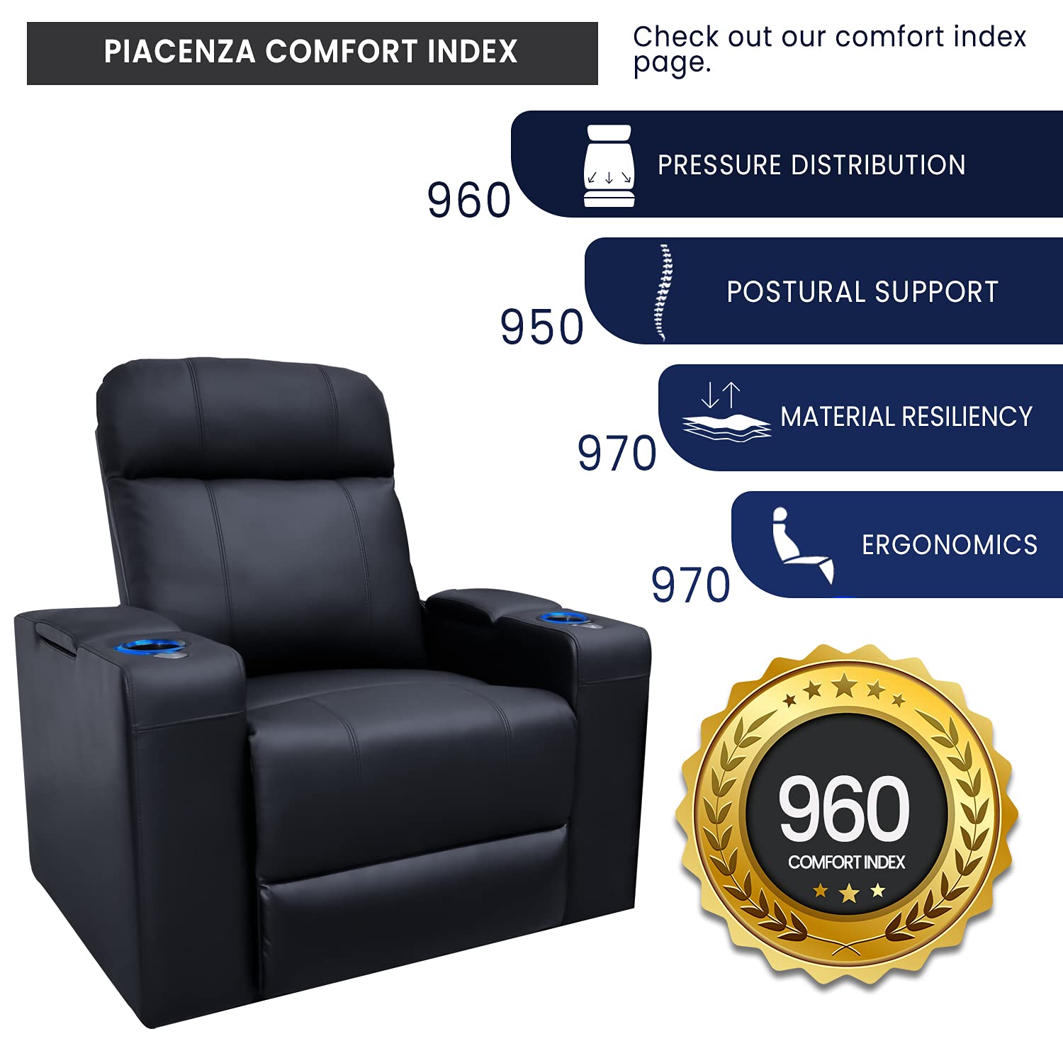Valencia Piacenza Home Theater Seating | Premium Top Grain Nappa 9000 Leather, Power Recliner, Power Headrest, LED Lighting (Row of 3 Loveseat Right, Black)