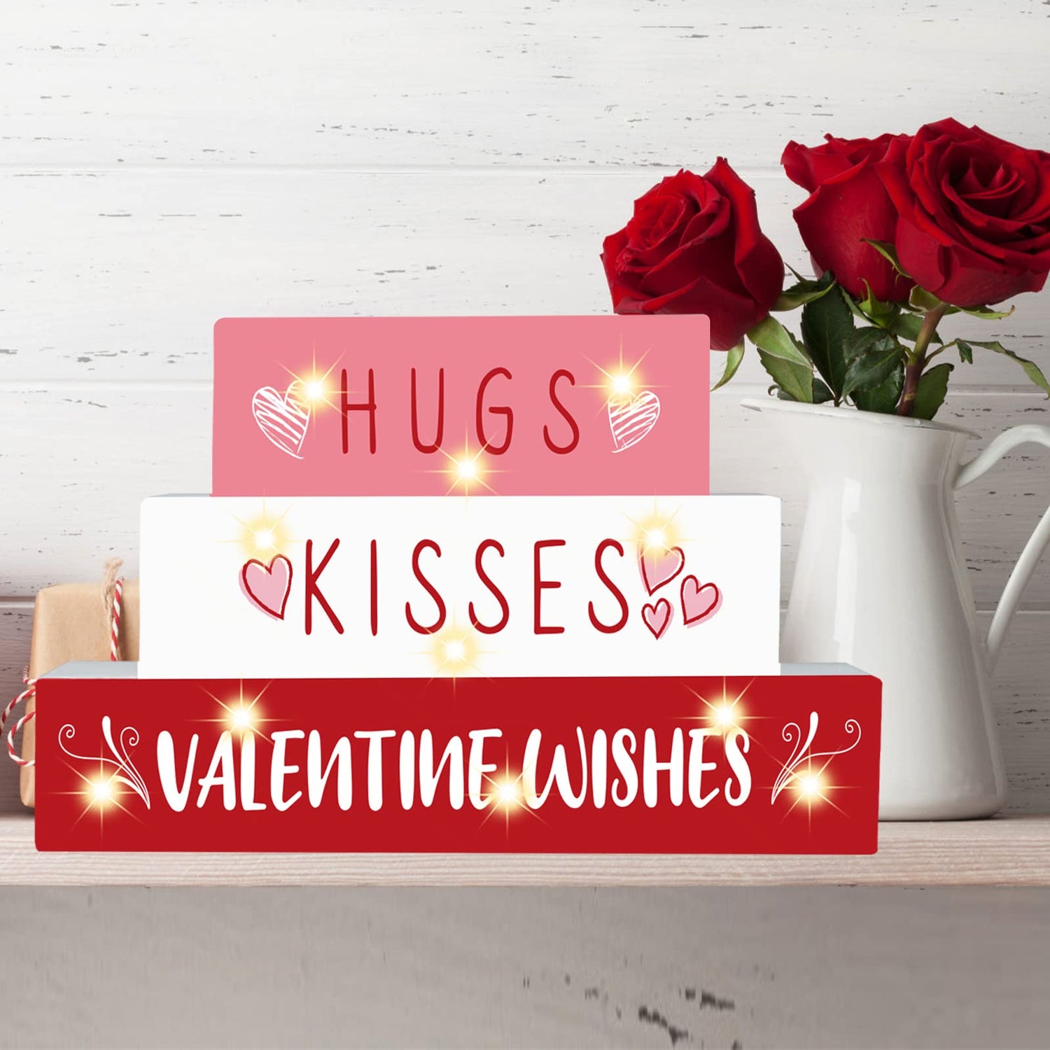 Valentines Day Decor,11 LED Valentine Wood Block Sign, Valentine Wishes Rustic Letters, Farmhouse Home Table Centerpiece Decor,Valentine's Day decor Tiered Tray, Tables, Mantel Decor,Valentine Gift