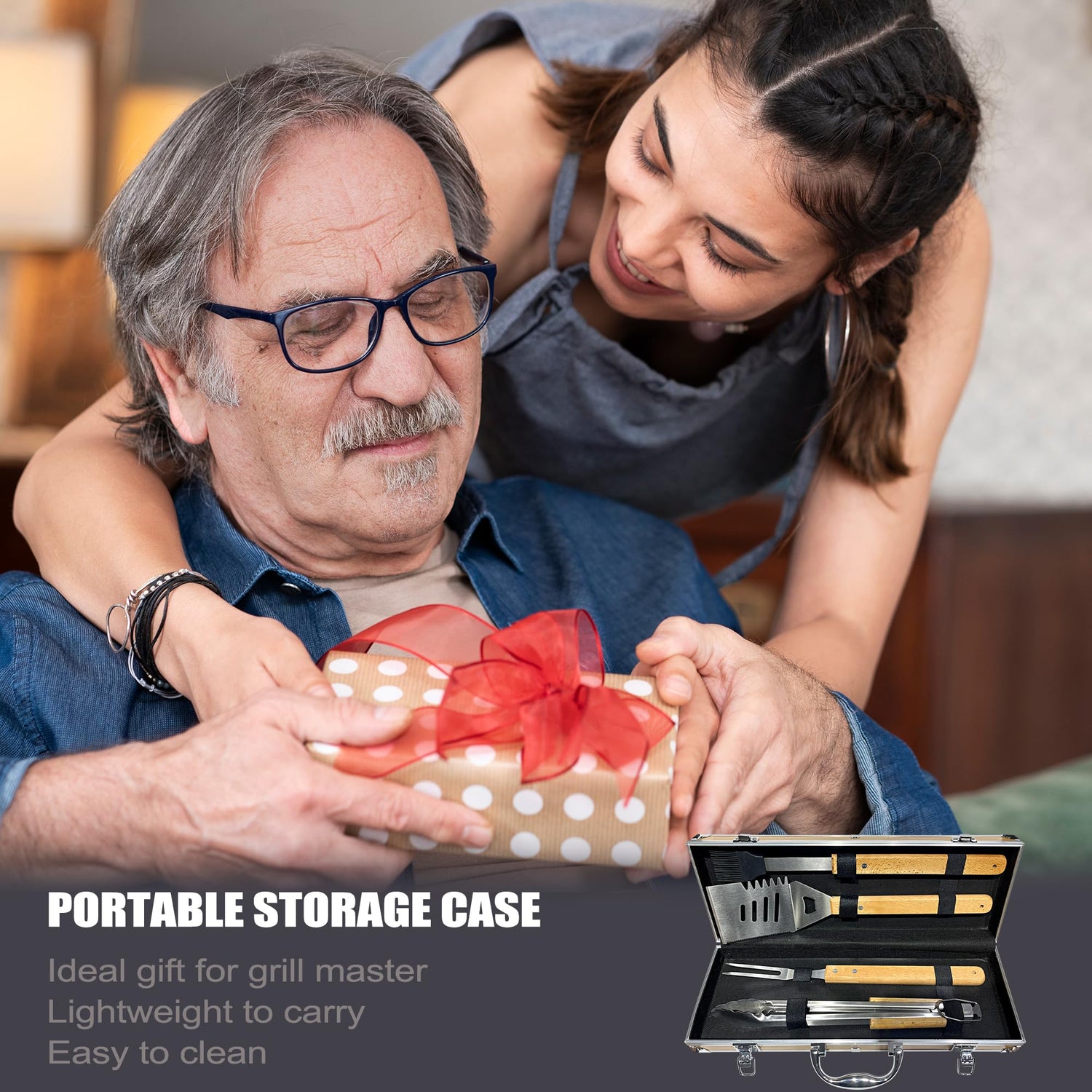- The Perfect BBQ Gift for Him: He will fall in love with this shiny stainless steel BBQ tool set at first sight. Give this luxurious BBQ tool set as a gift to him on Father's Day, Valentine's Day, Christmas, birthdays, anniversary or any other special occasion, and see the happy smile light up his face. This boxed BBQ tool set is also an excellent gift for Him, husband, or grandpa, suitable for camping, picnics, backyard, or home use.