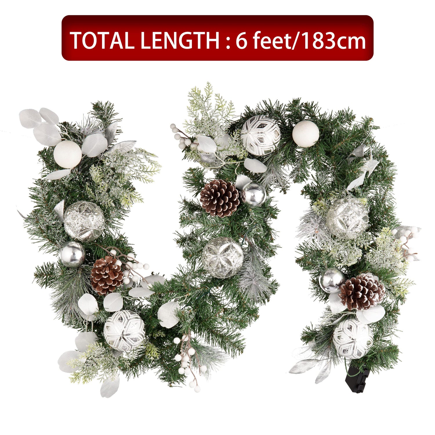 - 【Abundant Accessories】The 6ft Christmas garland features an artificial crestwood fir branch base, adorned with rich elements such as Christmas ornaments, pine cones, berries and more. This exquisite design creates a classic scene that brings a delightful festive atmosphere. To showcase it at its best, kindly remove the wreath from the box and carefully arrange and expand it