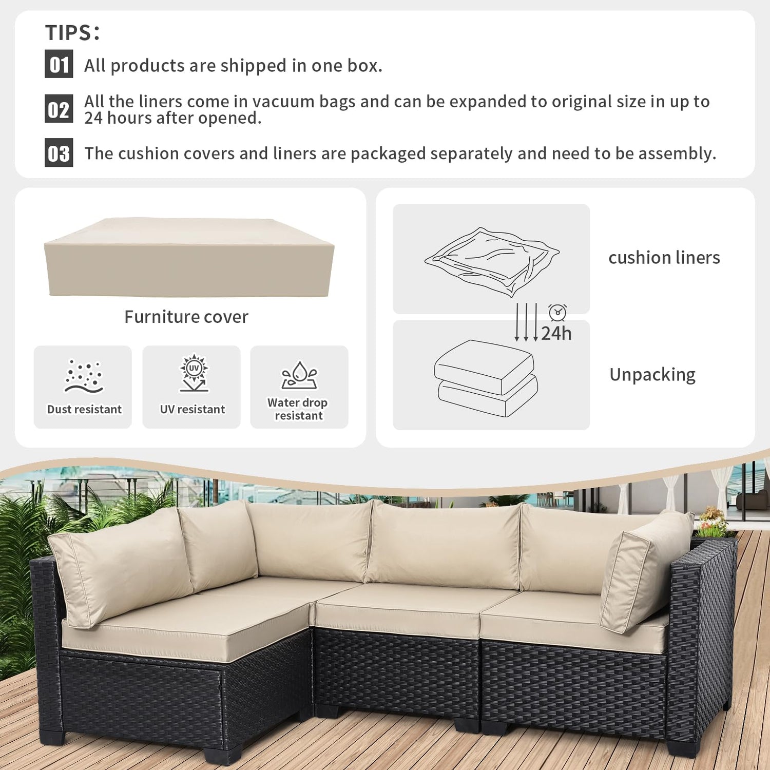 Valita Outdoor Furniture Replacement Cushions, Fits 4-seat Sectional Rattan Conversation Set, 10-Piece Patio Water-Resistant Replacement Sofa Cushions, Liner&Cover (Khaki)
