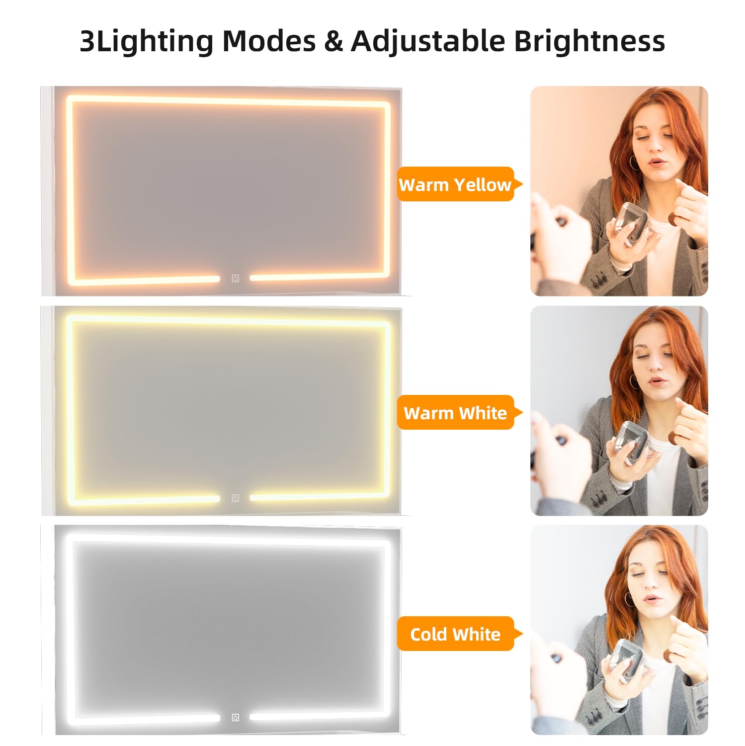 - 【Large Mirror with Adjustable Light】The mirror is equipped with LED lights with 3 color modes (warm/natural/cool) and adjustable brightness, providing a well-lit and clear reflection for easy makeup application or grooming.