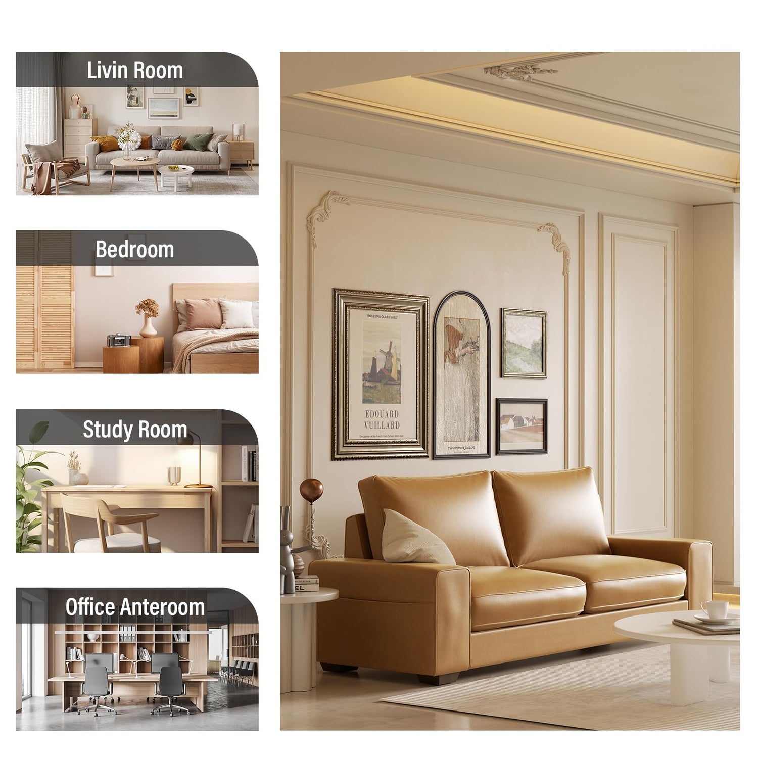 - [Convenient Storage and Easy Maintenance] Our modern sofa couch has functional storage compartments on both sides, making it easy to store periodicals, tablets, and other everyday needs. Our mid-century couch is composed of high-quality, skin-friendly imitation leather that is simple to clean—just wipe away stains with a wet cloth for easy upkeep.