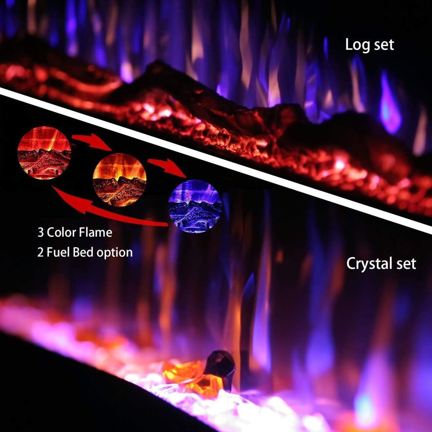 Valuxhome 72in Smart App Electric Fireplace,Recessed & Wall-Mount, Logset & Crystal,Decoration,Remote Control, 750/1500W,Black,Overheating Protection,62-86°F,Hard-Wire