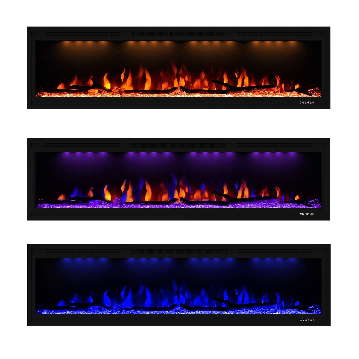 - MULTI FLAME MODES: 3 color top lights design; 3 flame colors and 3 fuel bed colors can be set according to your preference. Equiped with touch screen and remote control(11.5ft control distance), which helps you control this heater more convinient