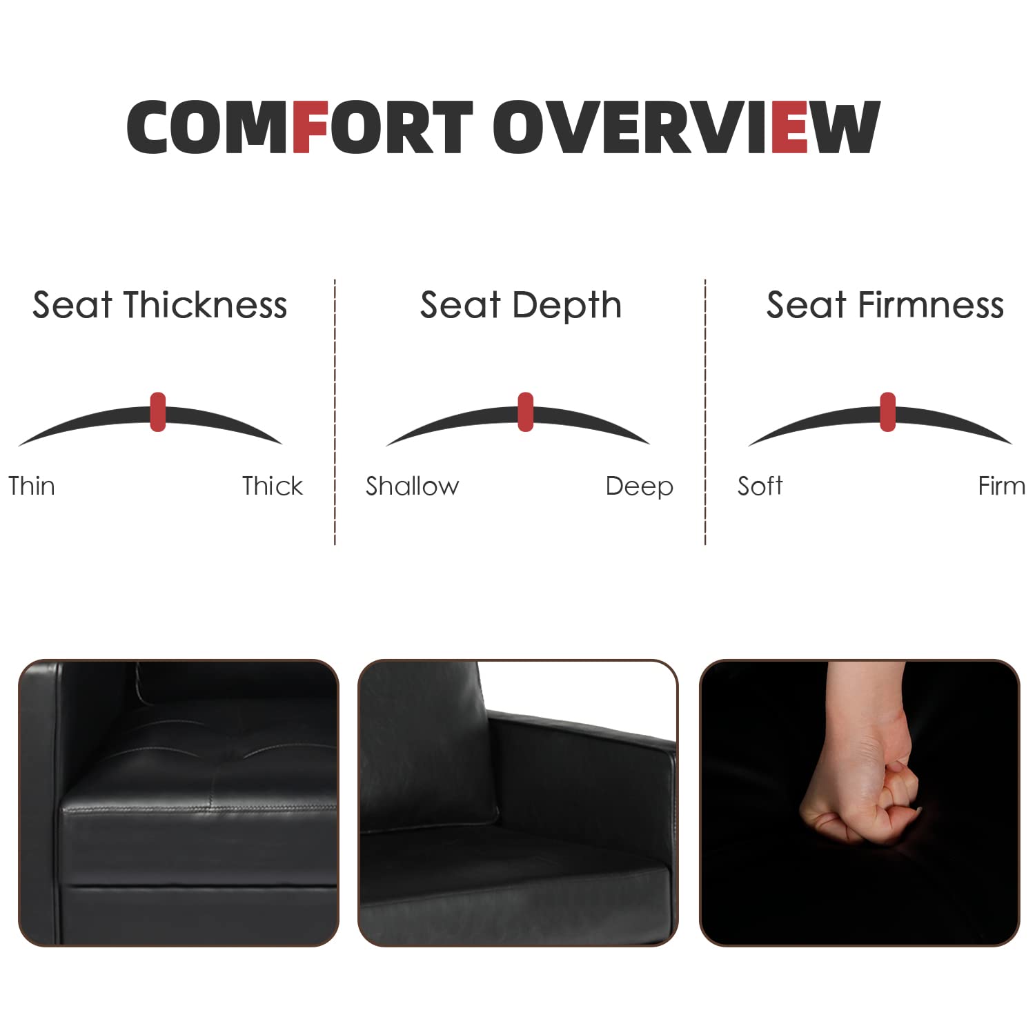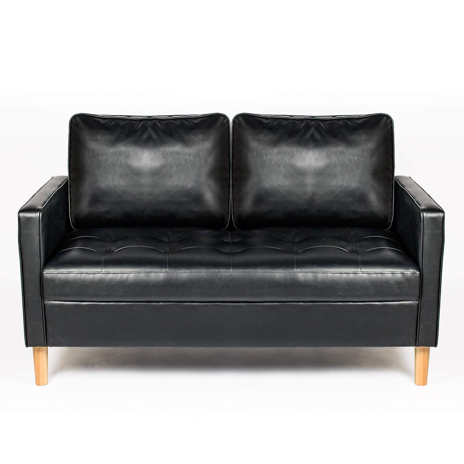 VAMEPOLE 57" Modern Sofa Couch, Black Faux Leather Loveseat for Living Room, Comfy Office Love Seats, Small Couches for Small Space
