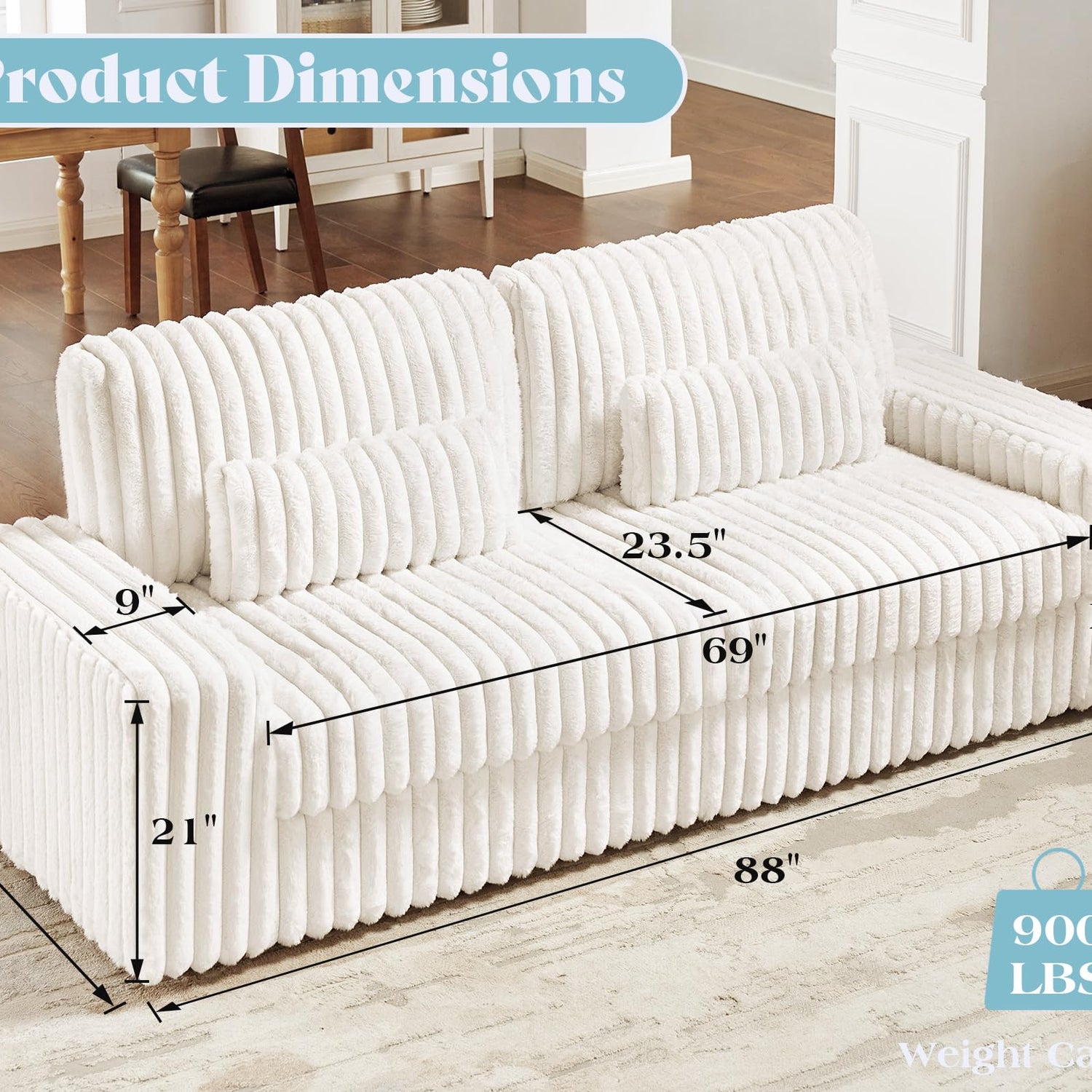 - Built to Last: Crafted with a solid hardwood frame, sturdy legs, and spring packs, this fluffy couch supports up to 900 lbs. Its durable design ensures long-lasting stability.