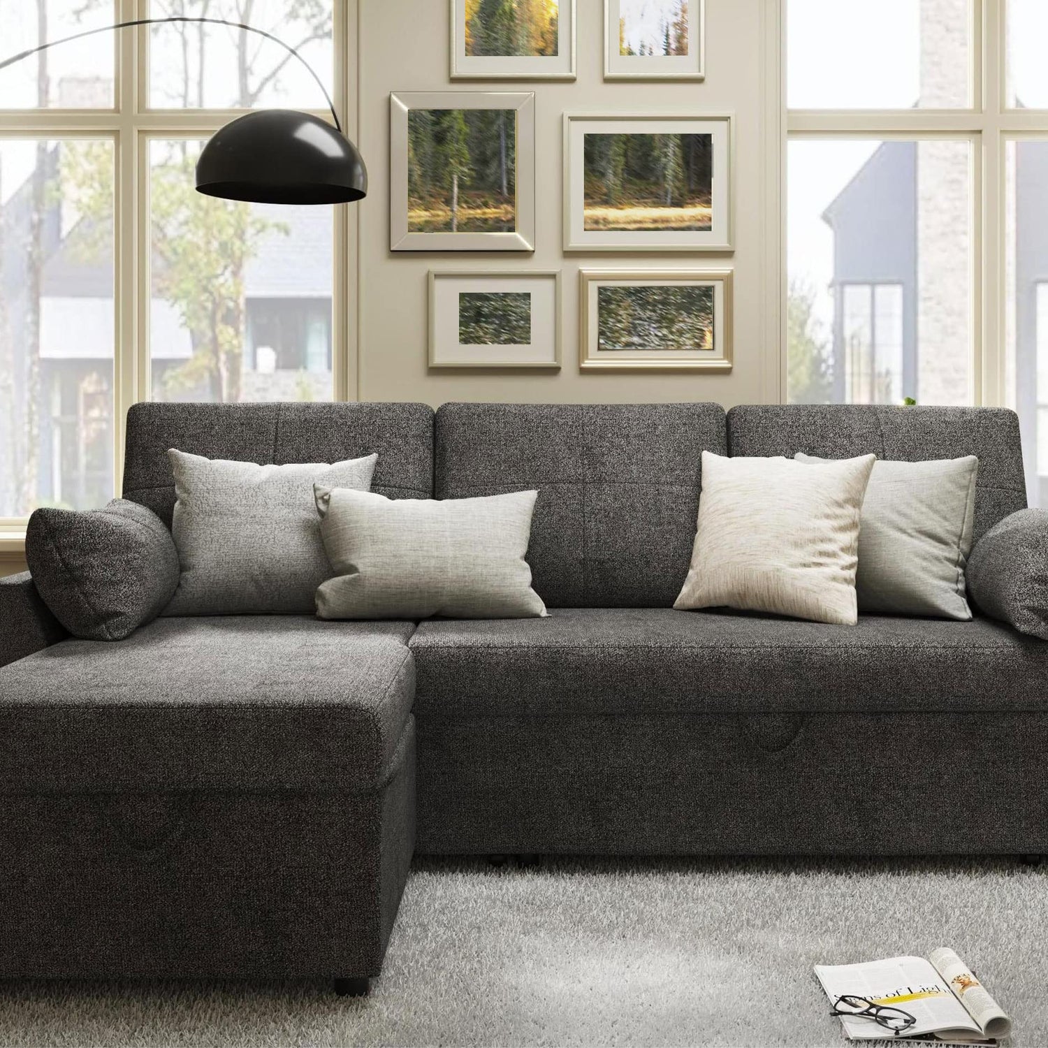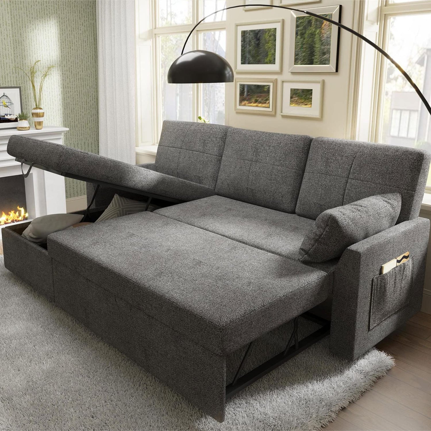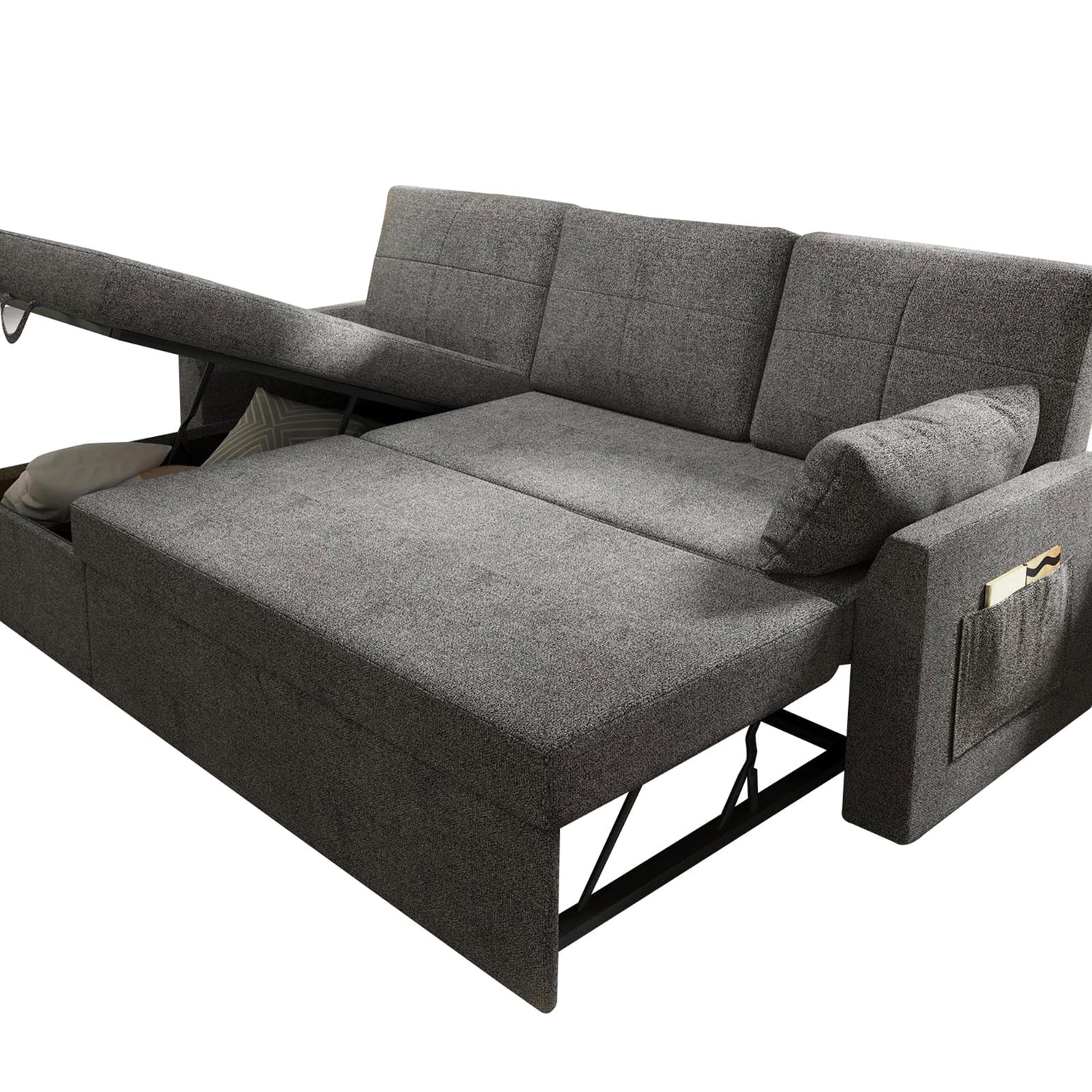 VanAcc Sleeper Sofa, Sofa Bed- 2 in 1 Pull Out Couch Bed with Storage Chaise for Living Room, Sofa Sleeper with Pull Out Bed, Grey Linen Couch