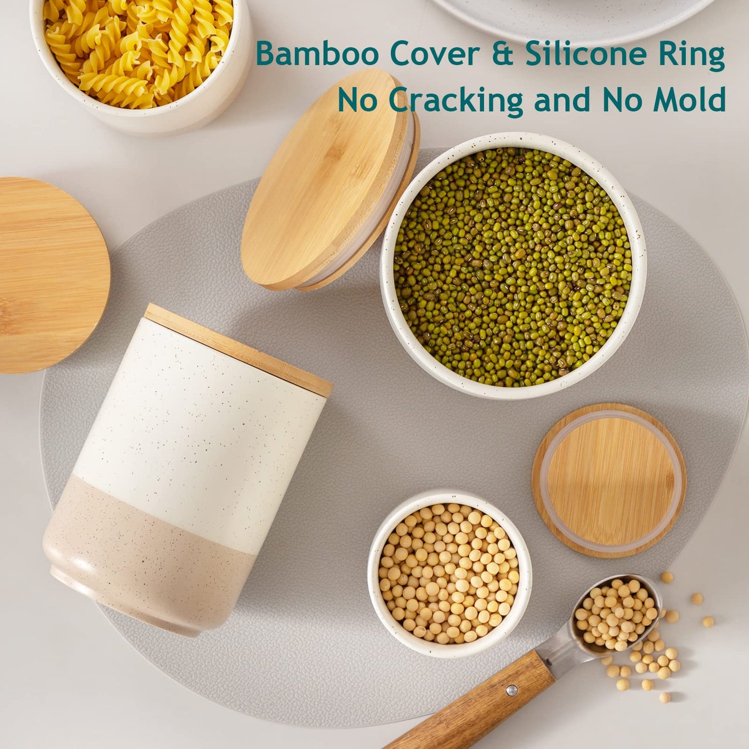 vancasso Sabine Canister Sets for Kitchen, Ceramic Kitchen Canisters for Countertop with Airtight Wood Lids, Large Flour and Sugar Containers for Coffee, Tea, Spice (Set of 3)