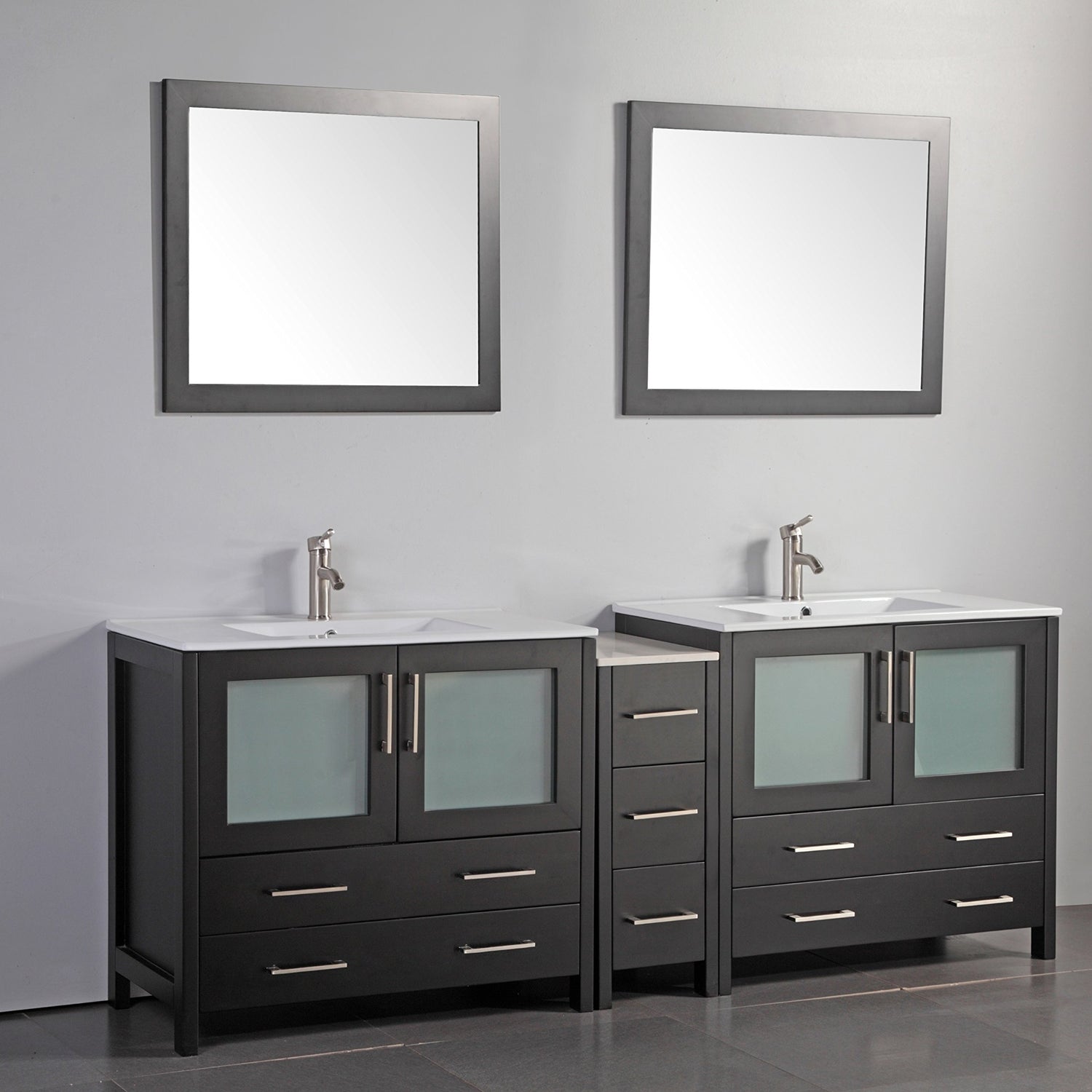 Details: Update your bathroom with this ceramic vanity set. white ceramic top contrasts with the cabinet's color. freshen up your bathroom with this storage vanity sink. Vanity Art 84-inch double sink bathroom vanity set offers an eye-catching focal point to your bathroom ensemble while increasing storage space. boasting a solid neutral finish features seven drawers and three cabinets for keeping crisp towels, cleaning supplies, and other bathroom essentials. matching framed mirror is also included.