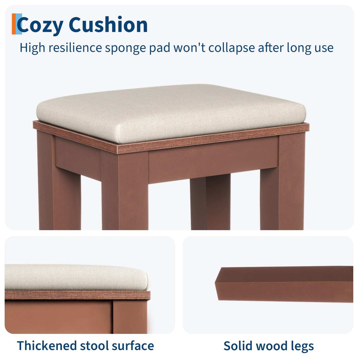 - 【Vanity with Comfortable Stool】: The included vanity stool features solid wood legs and is made from premium sponge and fabric, providing a soft yet supportive seat. Its ergonomic height enhances your makeup experience, and it can be conveniently tucked under the desk to save space in your dressing area