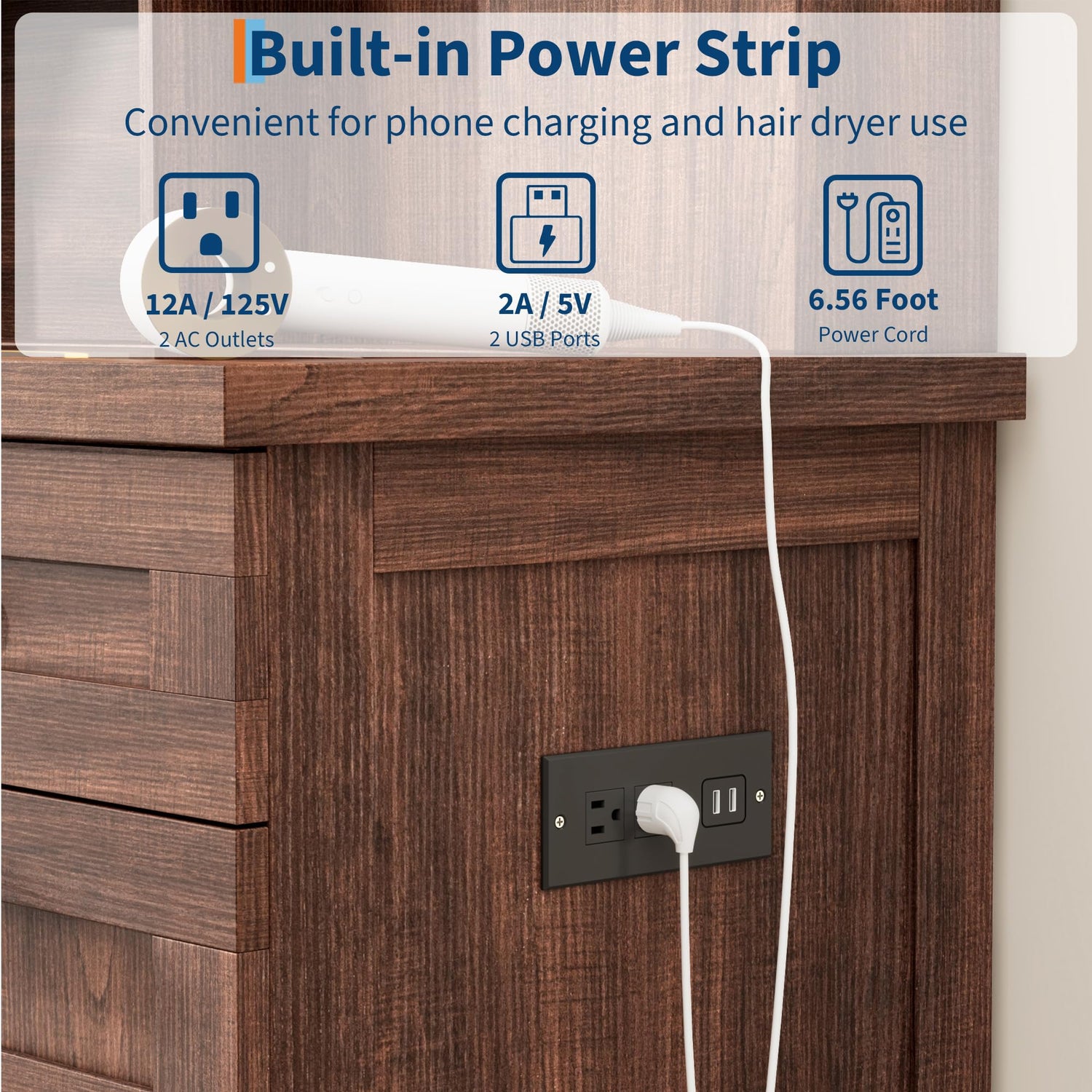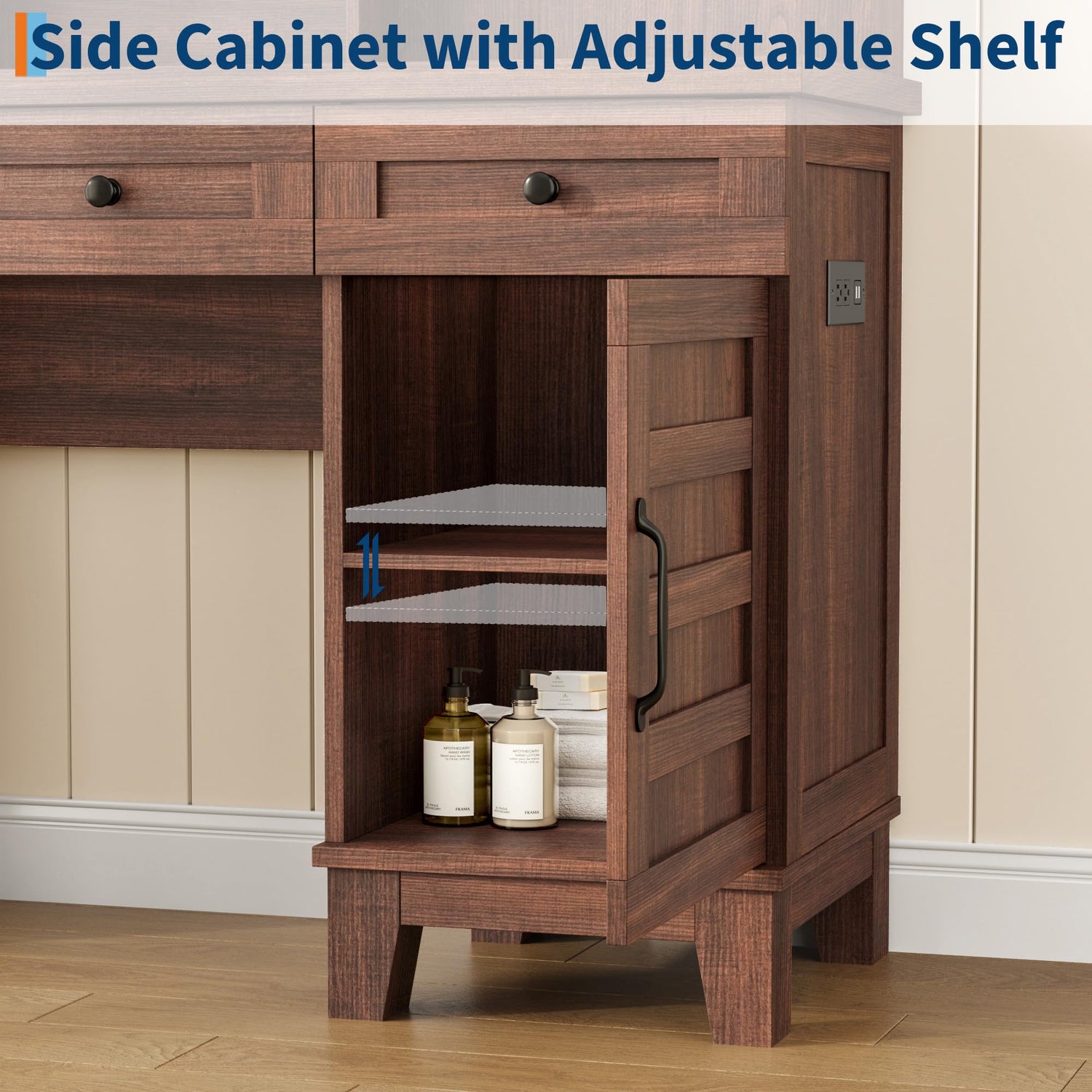 - 【Vanity with Charging Station】: This farmhouse vanity desk is equipped with a built-in charging station, including 2 standard outlets and 2 USB ports. You can easily power devices such as your hair dryer or smartphone—perfect for taking flawless selfies right after makeup. Even during busy mornings, this vanity desk with power outlet means you never have to worry about charging issues
