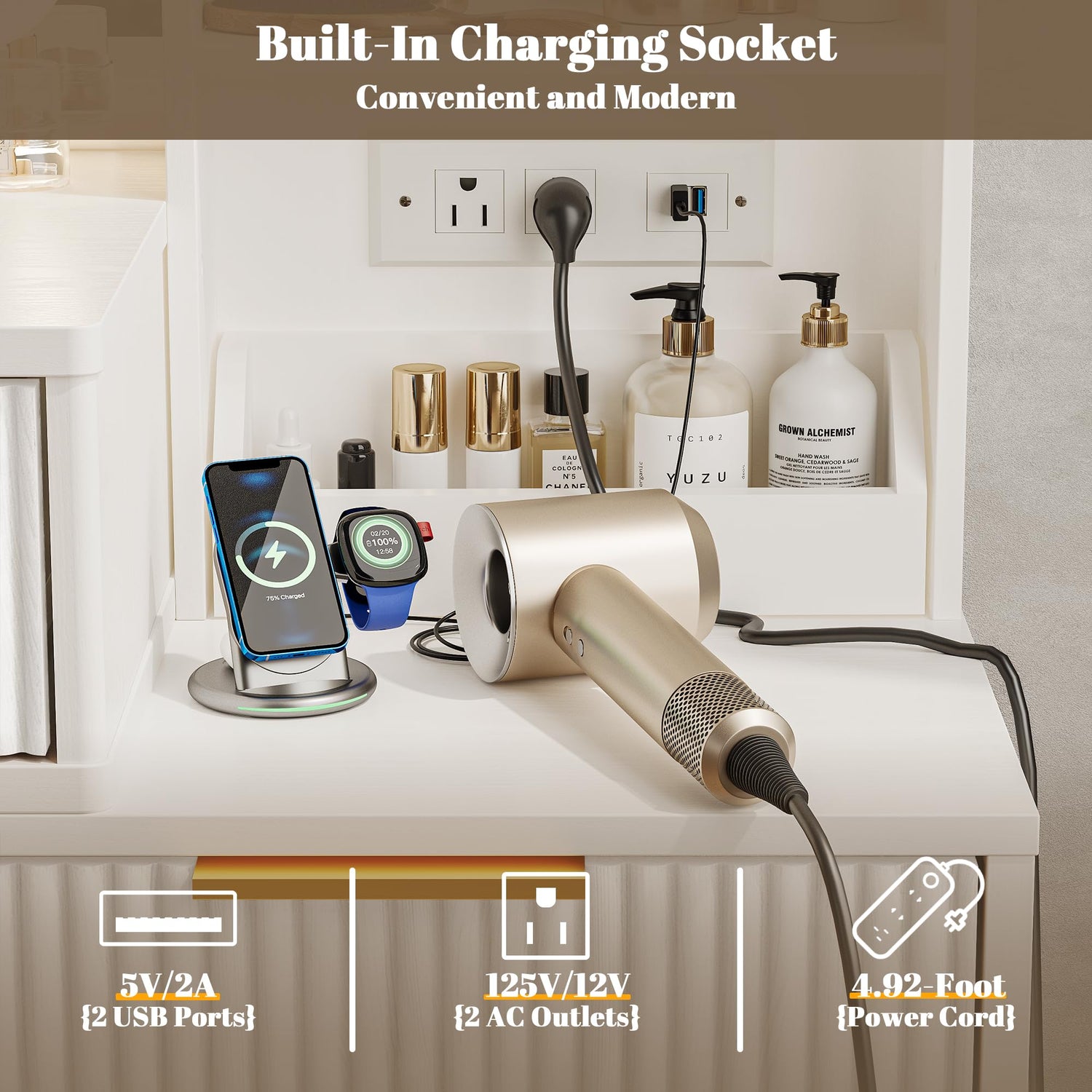 - 【Distinctive and Attractive Design with Refined Touches】The unique, fluted waveform panels infuse the design of makeup desk with a sense of elegance, highlighting its aesthetic appeal. The gold metallic hardware and cylindrical legs elevate the overall look of the desk, making it a beautiful addition to your bedroom.