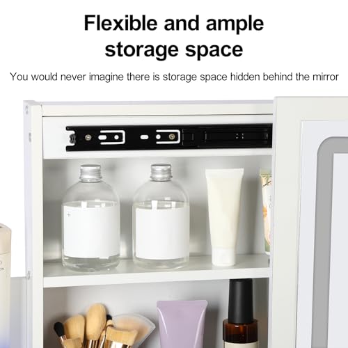- 👩👧PLENTY OF STORAGE SPACE: You'd never guess there's hidden storage space behind the mirror. The dresser has 4 spacious drawers with wooden handles and locks for jewelry and makeup. Open shelves and hidden shelves provide plenty of storage for cosmetics, nail polish and more.