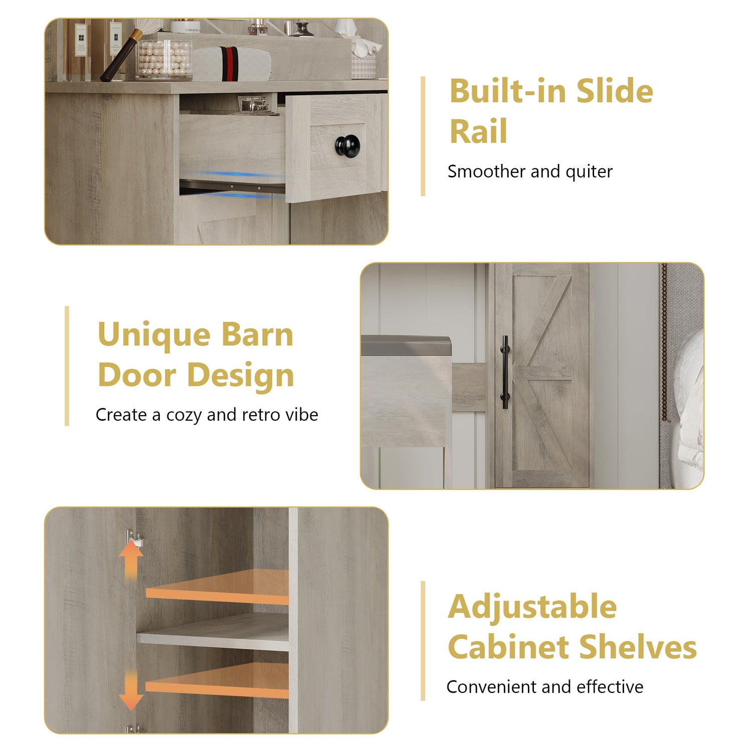 - 【Chic Farmhouse Style 】The retro wooden texture appearance, smooth lines, barn-door decor design, create a warm and natural atmosphere of the farmhouse. Try our farmhouse vanity set, add novelties and romance to your house and impress your visitors