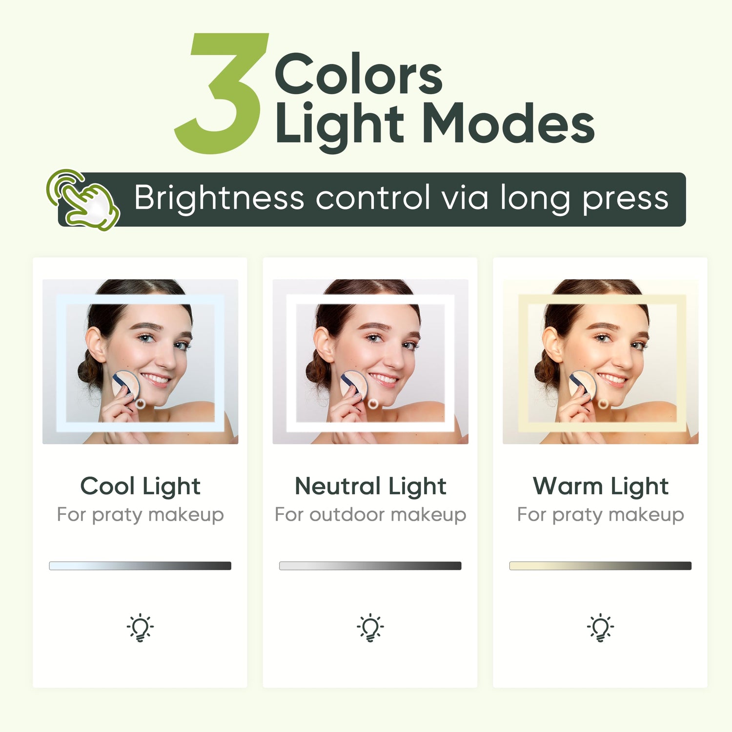 - Small Vanity Desk with Mirror and Lights: The small makeup vanity desk with lights mirror, allowing you to try every possible makeup look and create the perfect finish. The HD LED mirror features 3 different color modes (cold white, natural light, warm yellow) and adjustable brightness, catering to your needs in various environments.