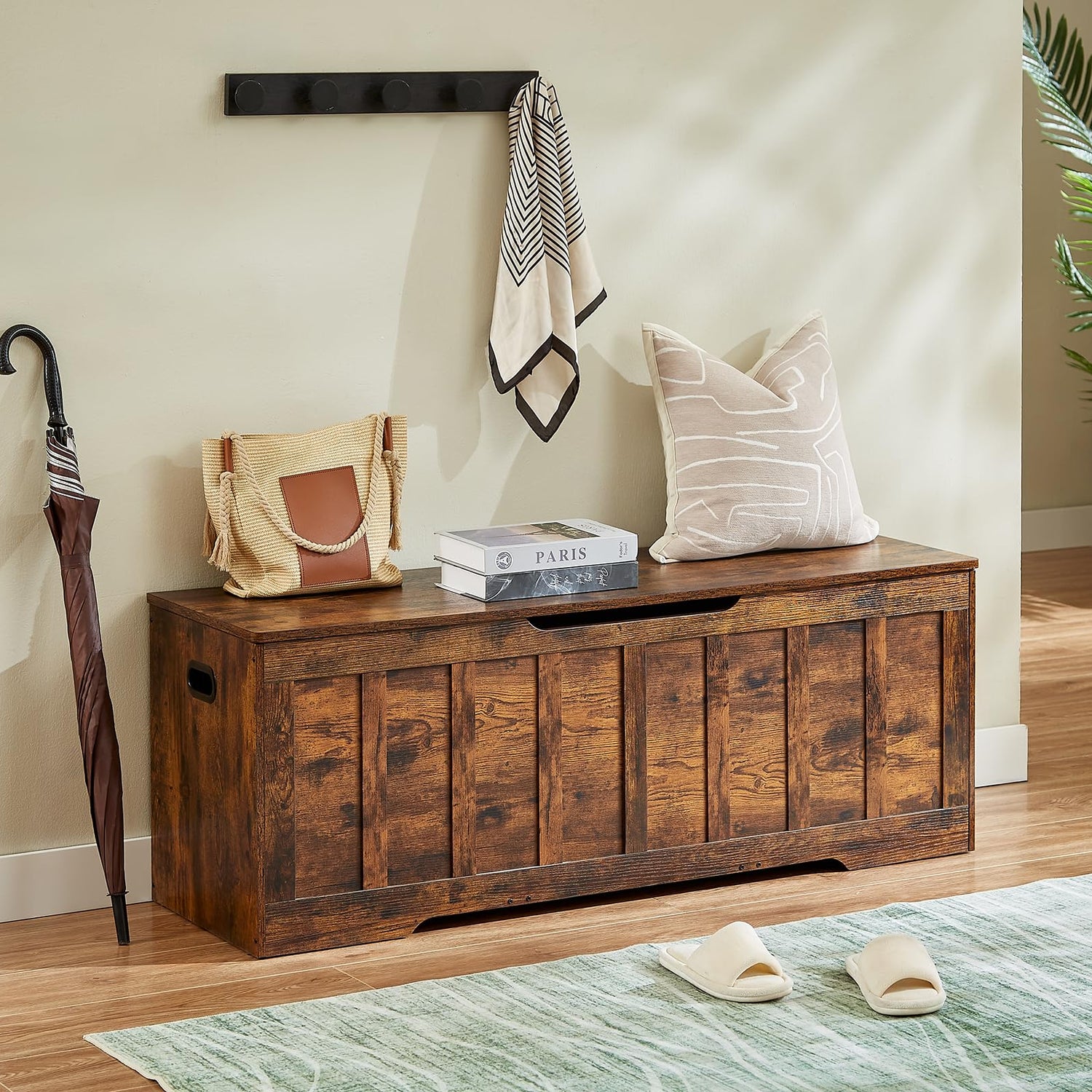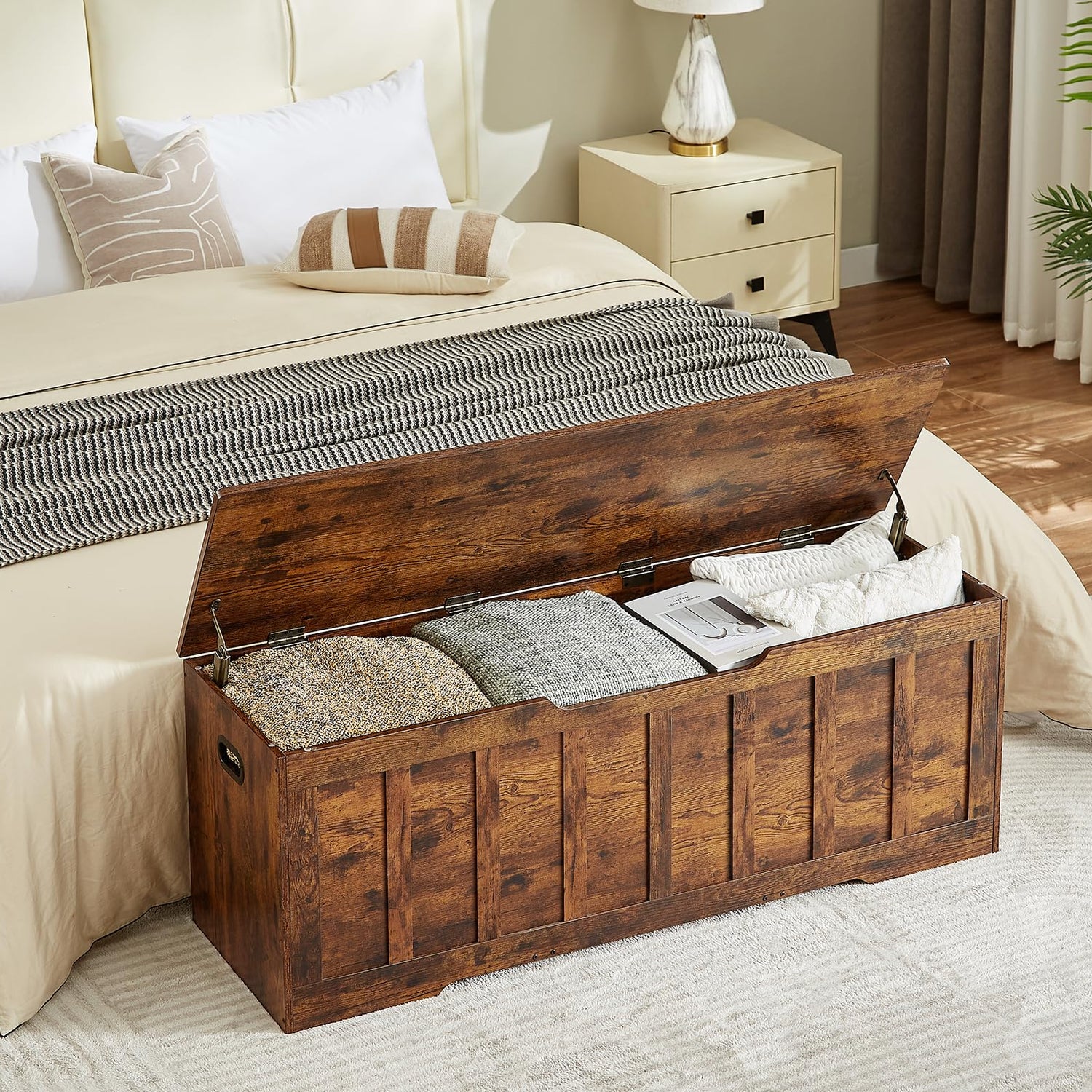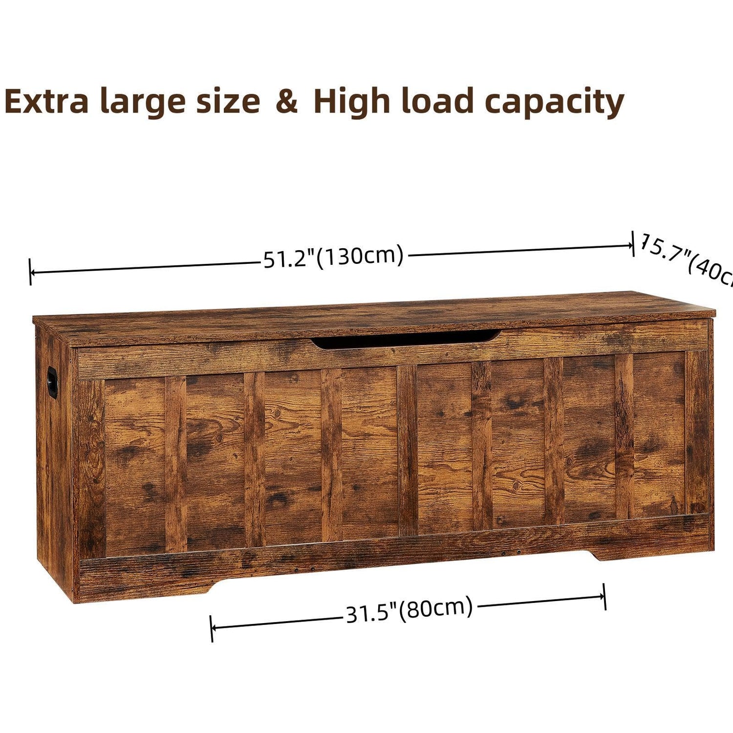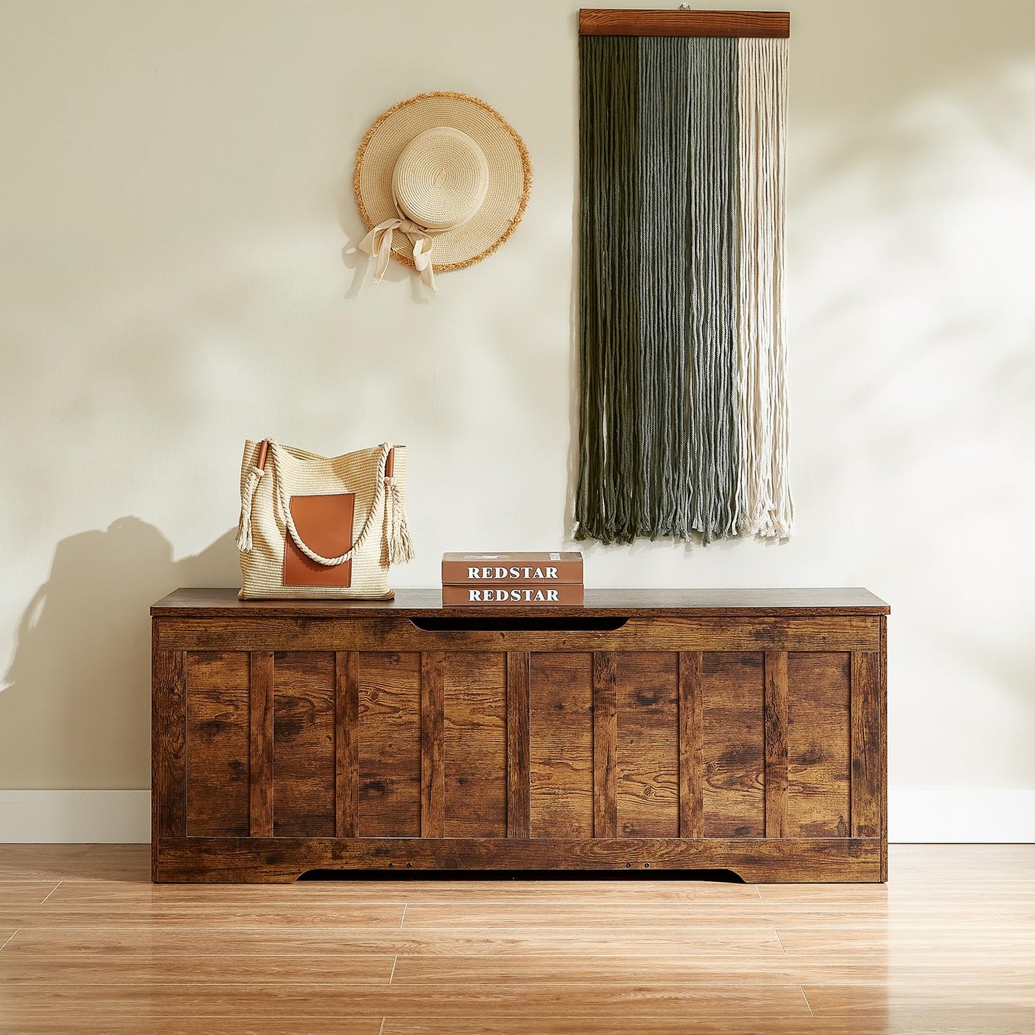 VANKILEY 51.2"Storage chest extra large,storage bench with 2 safety hinges,Shoe Bench,51.2*15.7*19.1inches,wooden trunk for bedroom,livingroom,entryway,Supports 220 lb,Easy Assembly(Rustic brown)
