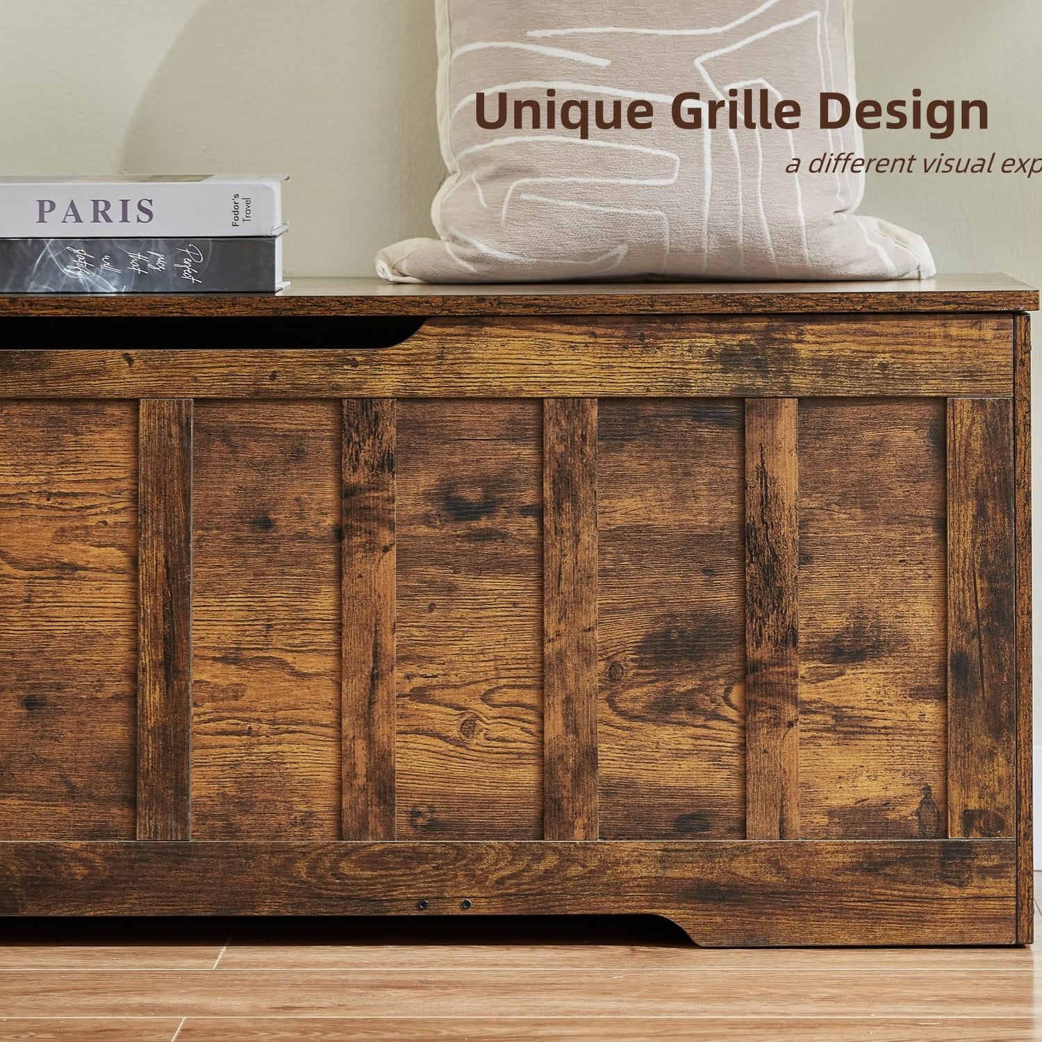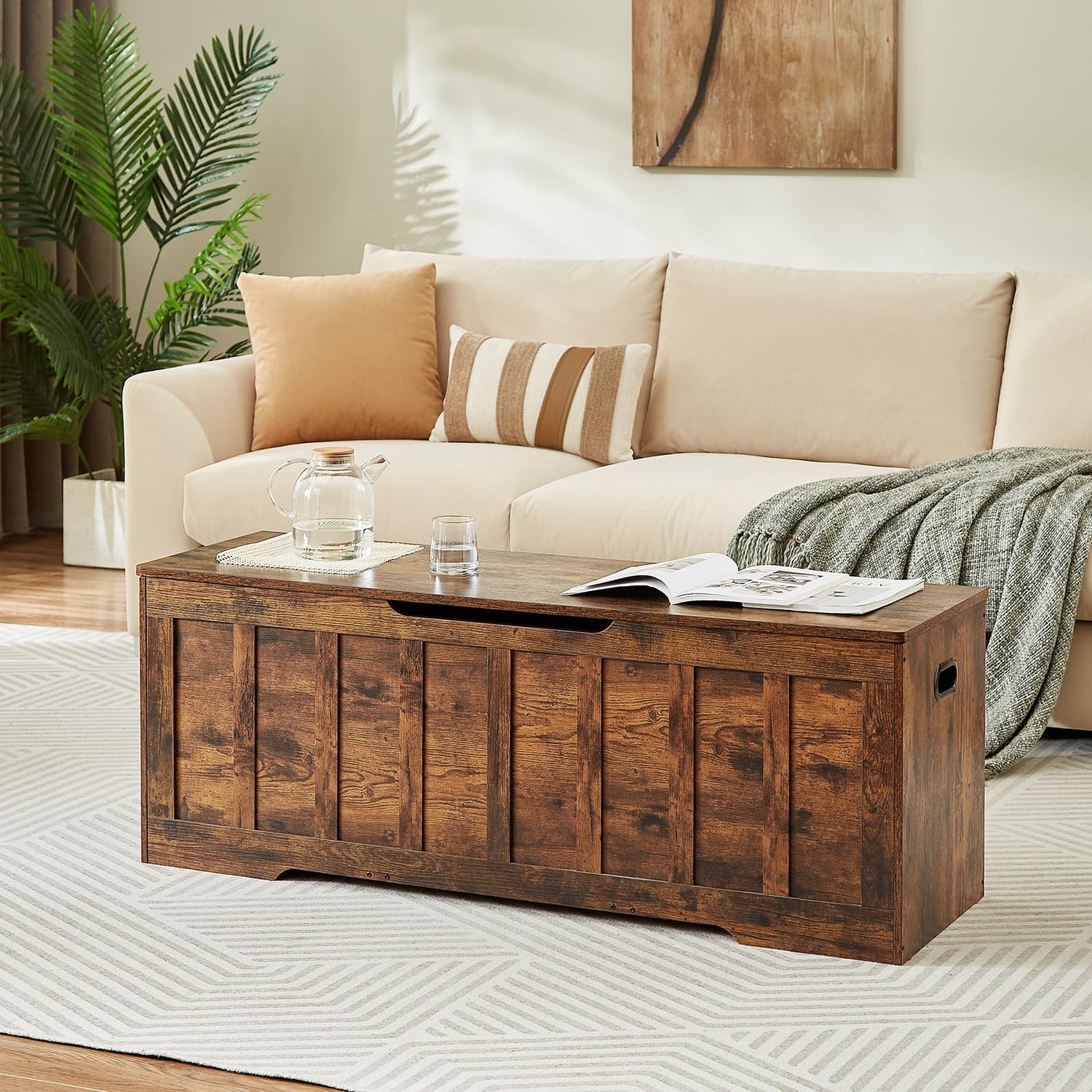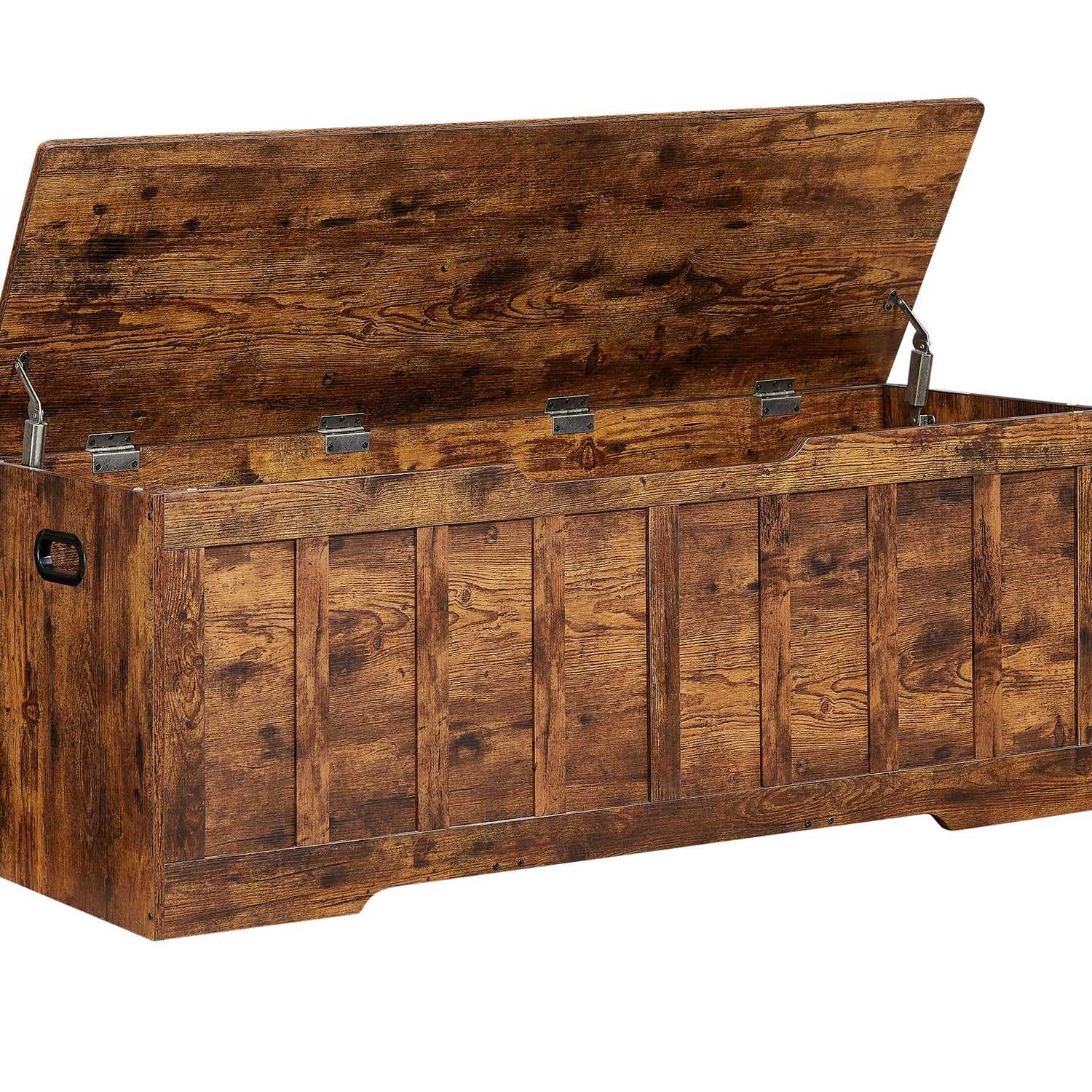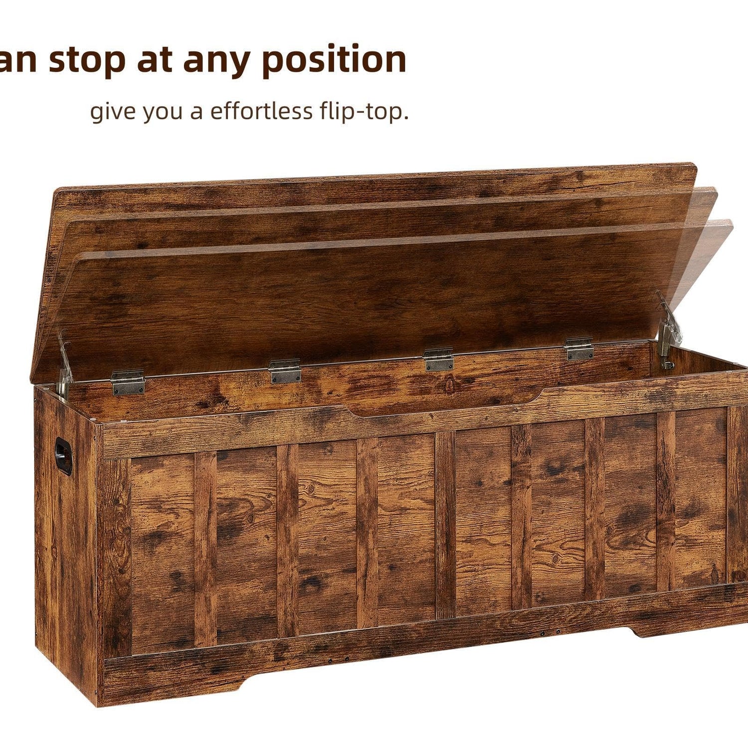 VANKILEY 51.2"Storage chest extra large,storage bench with 2 safety hinges,Shoe Bench,51.2*15.7*19.1inches,wooden trunk for bedroom,livingroom,entryway,Supports 220 lb,Easy Assembly(Rustic brown)