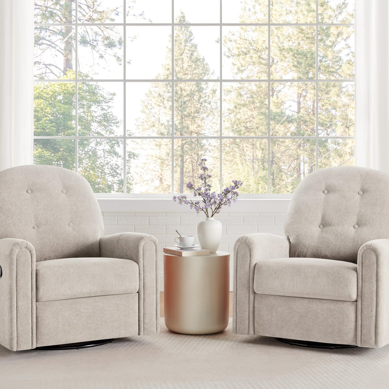 - 【Plush Tufted Backrest & Arm Support】The swivel glider recliner overstuffed back cushion and padded armrests cradle your body with soft, ergonomic support. The tufted design adds a stylish touch, blending modern aesthetics with cozy comfort—ideal for long periods of sitting in a living room, bedroom, or nursery.