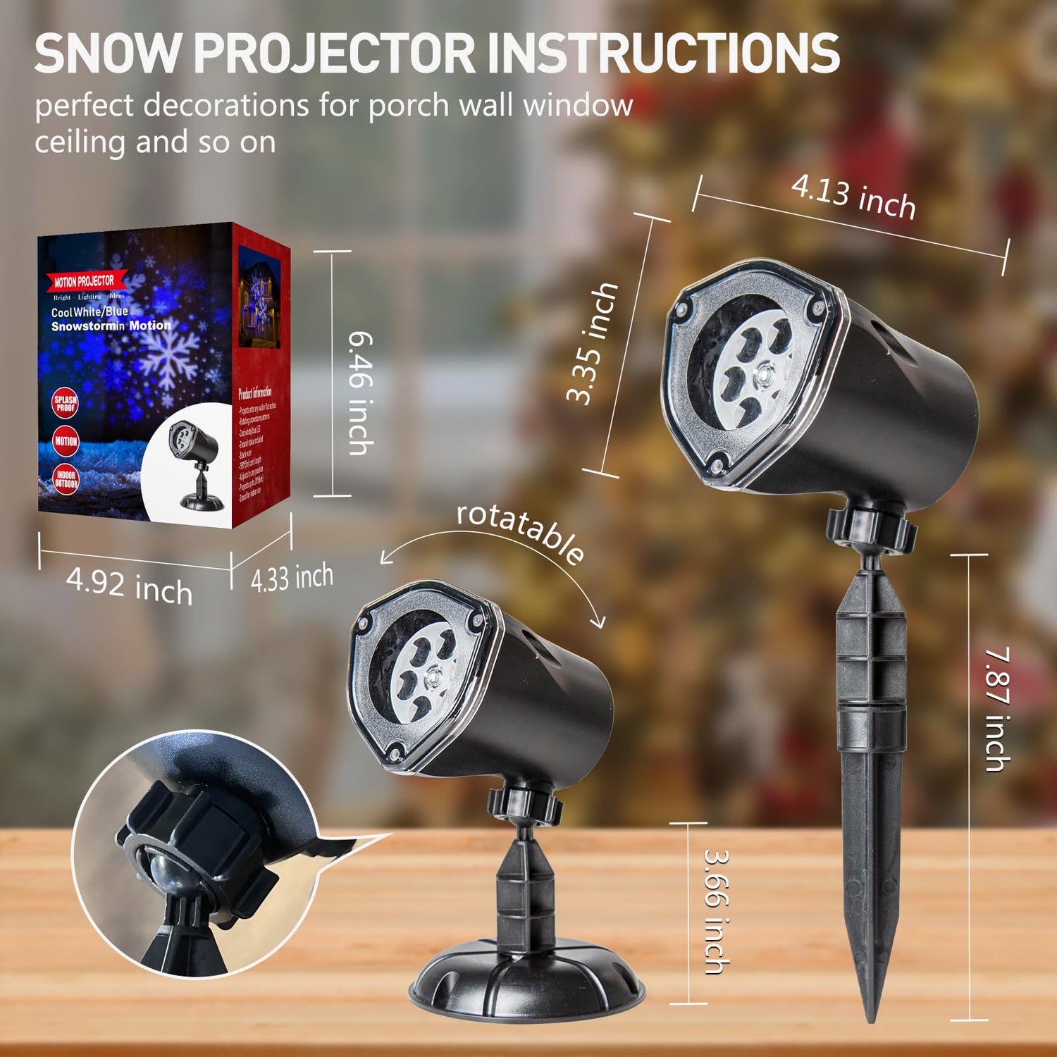 - 【 Snowflake Projector 】 : White and blue snowflake pattern automatically moves and rotates, creating a realistic snowy scene, which as if puts us in a fairytale world of snowflakes dancing and flying