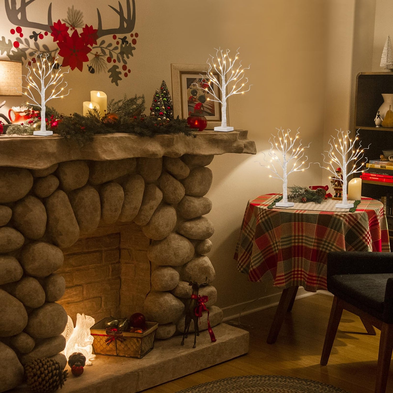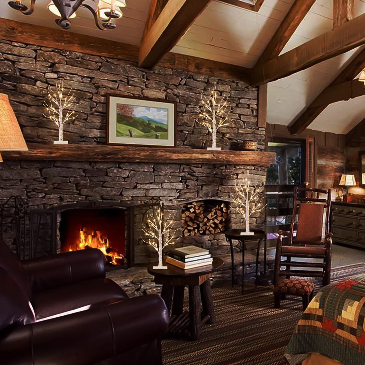 Vanthylit Christmas Tree Decorations, White Birch Tree with LED Lights- Set of 4, Warm White Small Tree Lights Battery Powered/USB, Timer Lighted Tree for Home Wedding Indoor Outdoor Decor (2 FT)