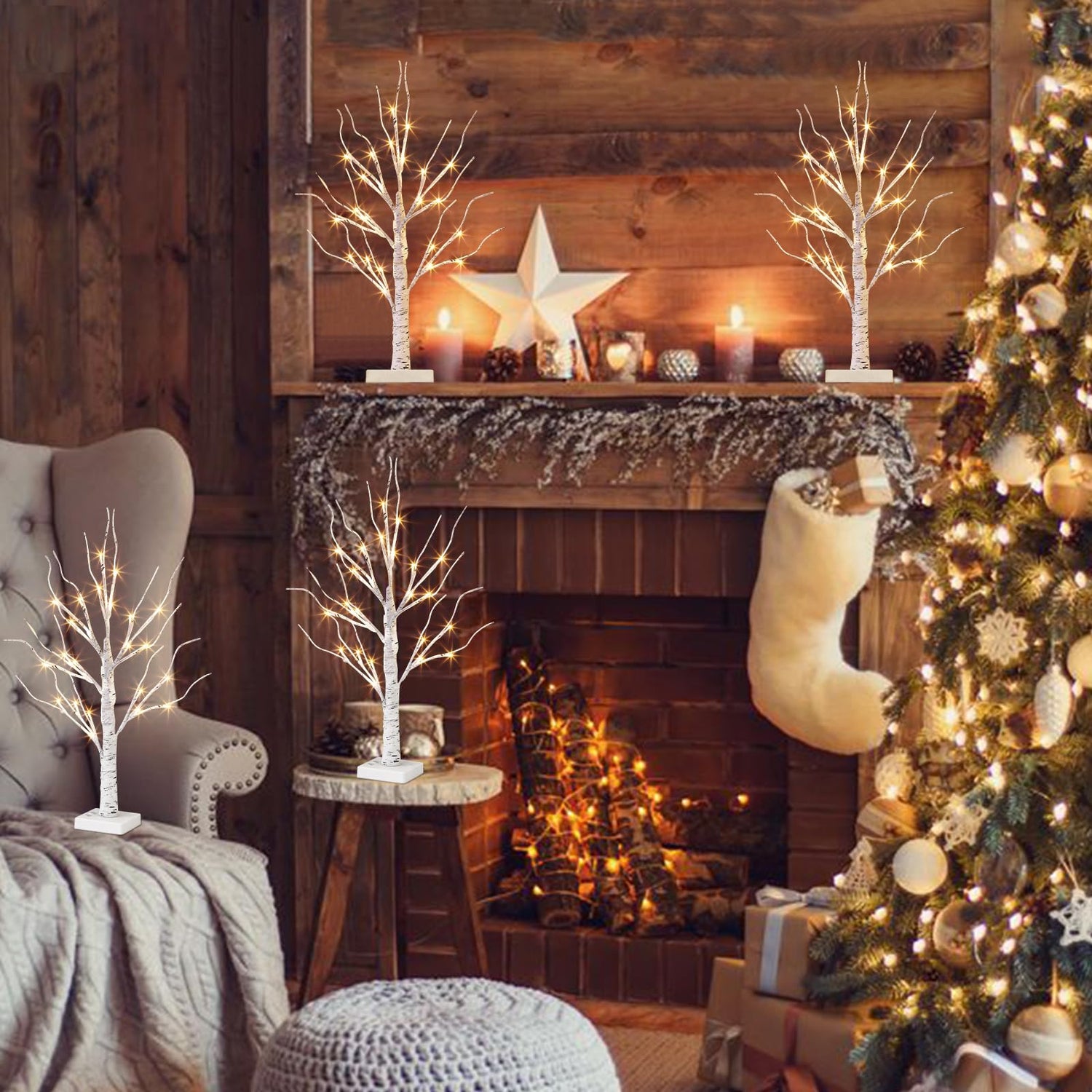 - Lighted Birch Tree : This 2 FT tall birch tree light with a 4 inch x 4 inch base and 24 warm white LED lights looks simple and elegant, making it a perfect addition to create a festive atmosphere for holidays